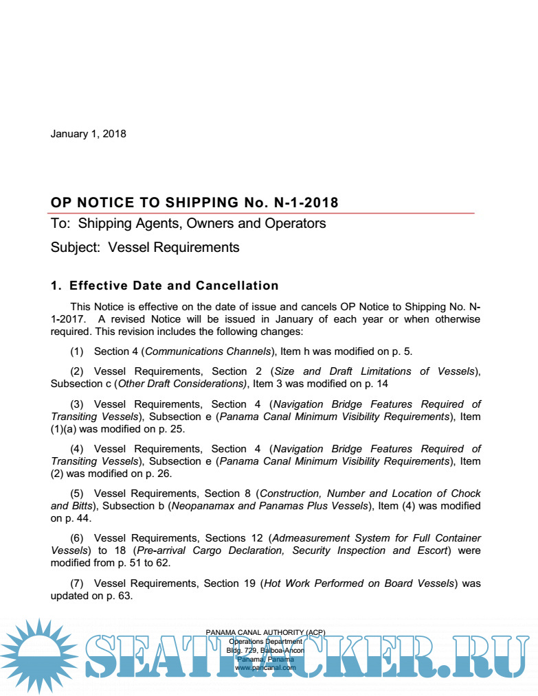 OP NOTICE TO SHIPPING No. N-1-2018 (PANAMA CANAL) - Vessel Requirements