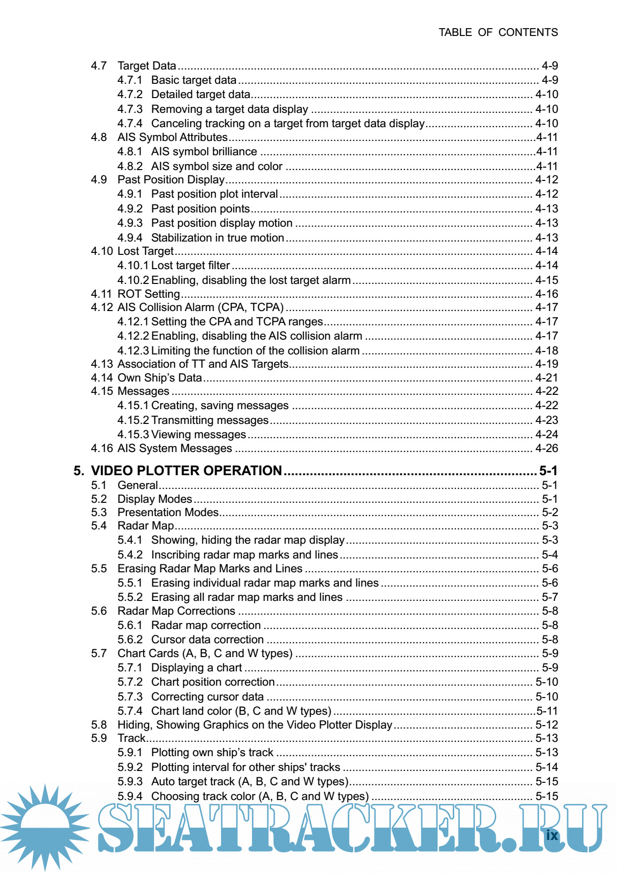 Year: 2011 Language: english Author: Furuno Genre: Manual Publisher: Furuno Edition: N Format: PDF Quality: eBook Pages count: 312 Description: Your radar is designed and constructed to meet the rigorous demands of the marine environment. However, no machine can perform its intended function unless installed, operated and maintained properly. Please carefully read and follow the recommended procedures for operation and maintenance. Features: • High-resolution 19-inch (FAR-2107-D), 20.1-inch LCD (FAR-2107(-BB)) or 23.1-inch LCD (FAR-2807(-D)). • Two types of trackball-equipped control units are available: RCU-014 (full keyboard) and the RCU-015 (palm control). The trackball is easy to use thanks to the ergonomically designed palm rest. • Simplified operation with point-and-click menu operation. • All functions are accessible by using the trackball alone. • Applicable to HSC (High Speed Craft) • TT, AIS, Radar Plotter and Interswitch supplied as standard. • Meets the requirements in IEC 62388 (Maritime navigation and radiocommunication equipment and systems - Shipborne radar - Performance requirements, methods of testing and required test results). • Meets the requirements in IMO MSC.192(79). • Meets the requirements in IEC 62288 (Maritime navigation and radiocommunication equipment and systems - Presentation of navigation-related information on shipborne navigational displays - General requirements, methods of testing and required test results). • Target alarm watches for targets entering or exiting an alarm zone • TCPA/CPA alarms • Electronic parallel index lines • 42 rpm antenna for high speed craft
