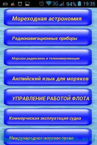 Год выпуска: 2018 Версия: 2.0 Разработчик: Progressiv Digital Inc. Платформа: Android Системные требования: Android 3.0 или более поздняя Язык интерфейса: русский Таблэтка: Не требуется Описание: Ознакомительная версия приложения Судовождение. Наука судовождения и ее составные части...Приложение посвящено многим наукам в кораблевождении вы узнаете об устройстве судна, навигации, лоции, мореходной астрономии, техническим средствам судовождения и другим важным дисциплинам..В Приложении присутствуют:английский язык, включая деловой для моряков; лоция внутренних водных путей; мореходная астрономия; радионавигационные приборы; морская радиосвязь и телекоммуникации; управление работой флота; коммерческая эксплуатация судна; морское право; технология перевозки груза и др. Дополнительно вы узнаете : Борьба за живучесть судна, Электронная картография, Использование САРП в навигации, шкала Бофорта, записи в судовом журнале, связь сигнальными флагами, пожары на судах, Туманы на морях и океанах, Точность определения координат судна, Расхождение судов в канале, Порядок определения места судна, Навигационный запас, Швартовные операции к борту судна, Швартовка судна к причалу, Подъем якоря на судне, Командование спасательной шлюпкой, Возникновение статического крена, электронная картография и многое многое другое. Будет полезно для мореходного училища. Имеет ограничения по просмотру! Для полной информации есть платная версия.
