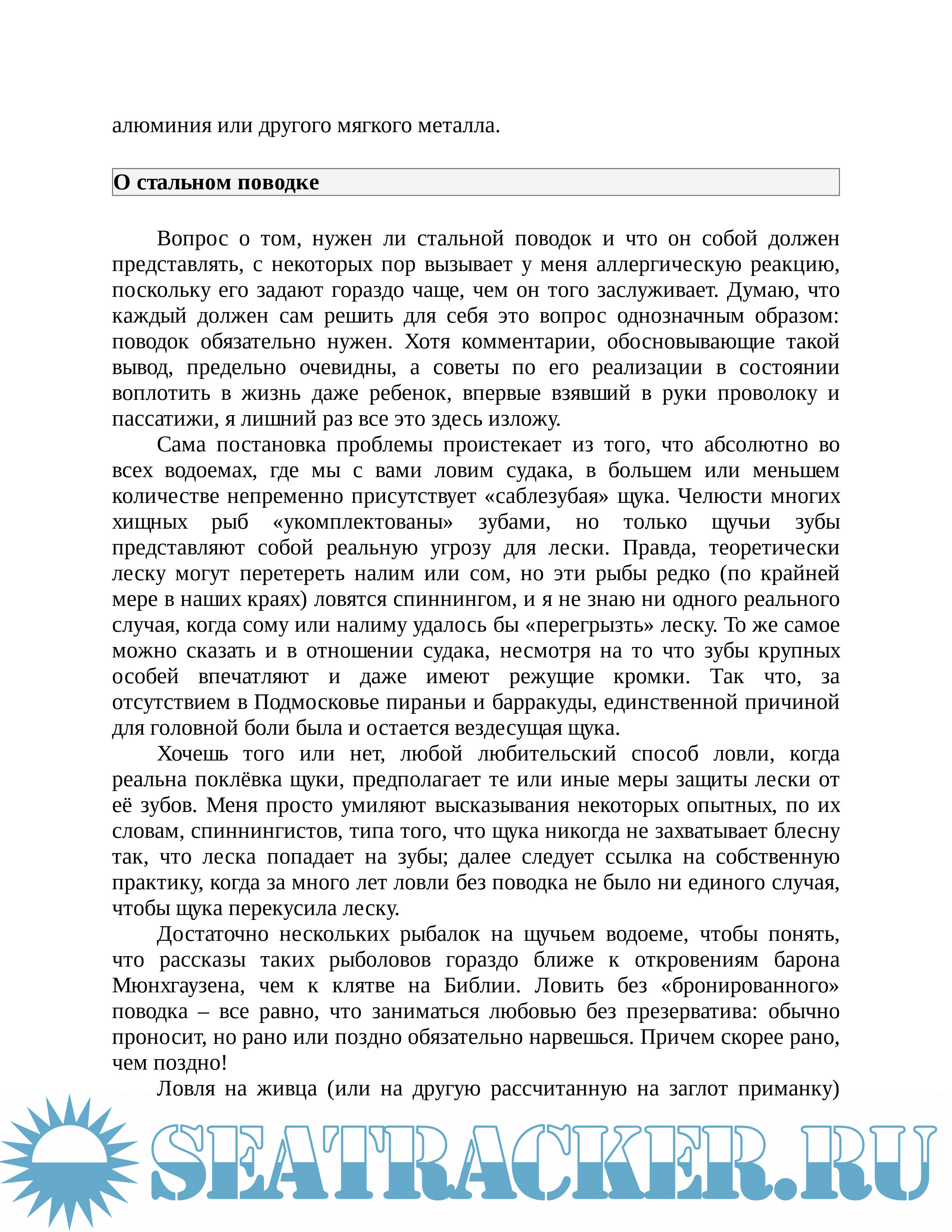 Описание: В книге самым подробным образом раскрыты практически все особенности ловки судака на спиннинг в различных ситуациях, на разных водоемах и в разное время года. Книга будет полезна как начинающим спиннингистам-судачатникам, так и их более опытным коллегам.