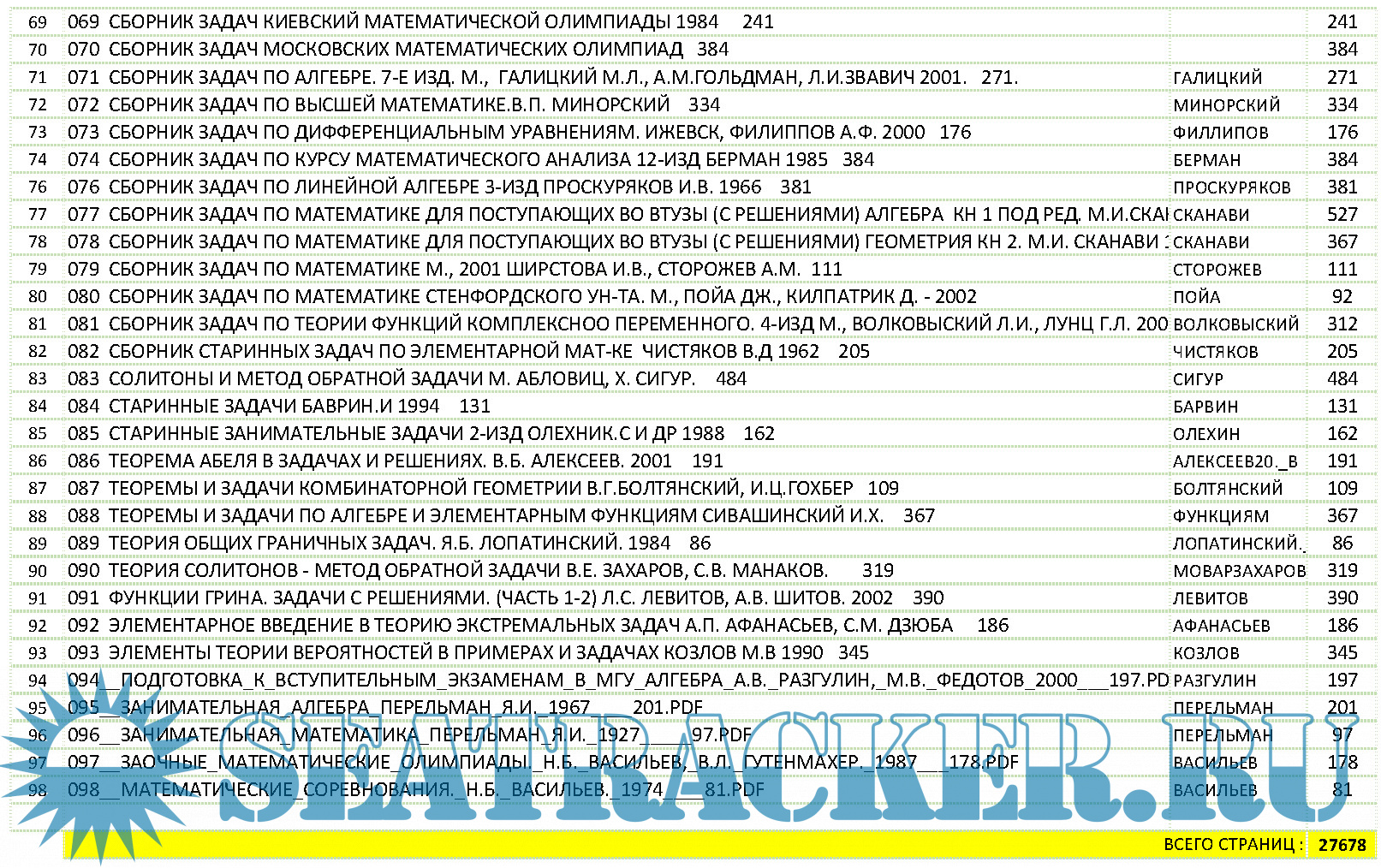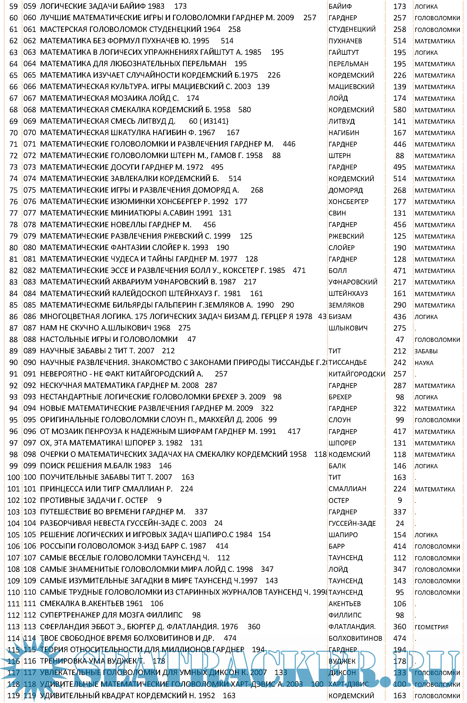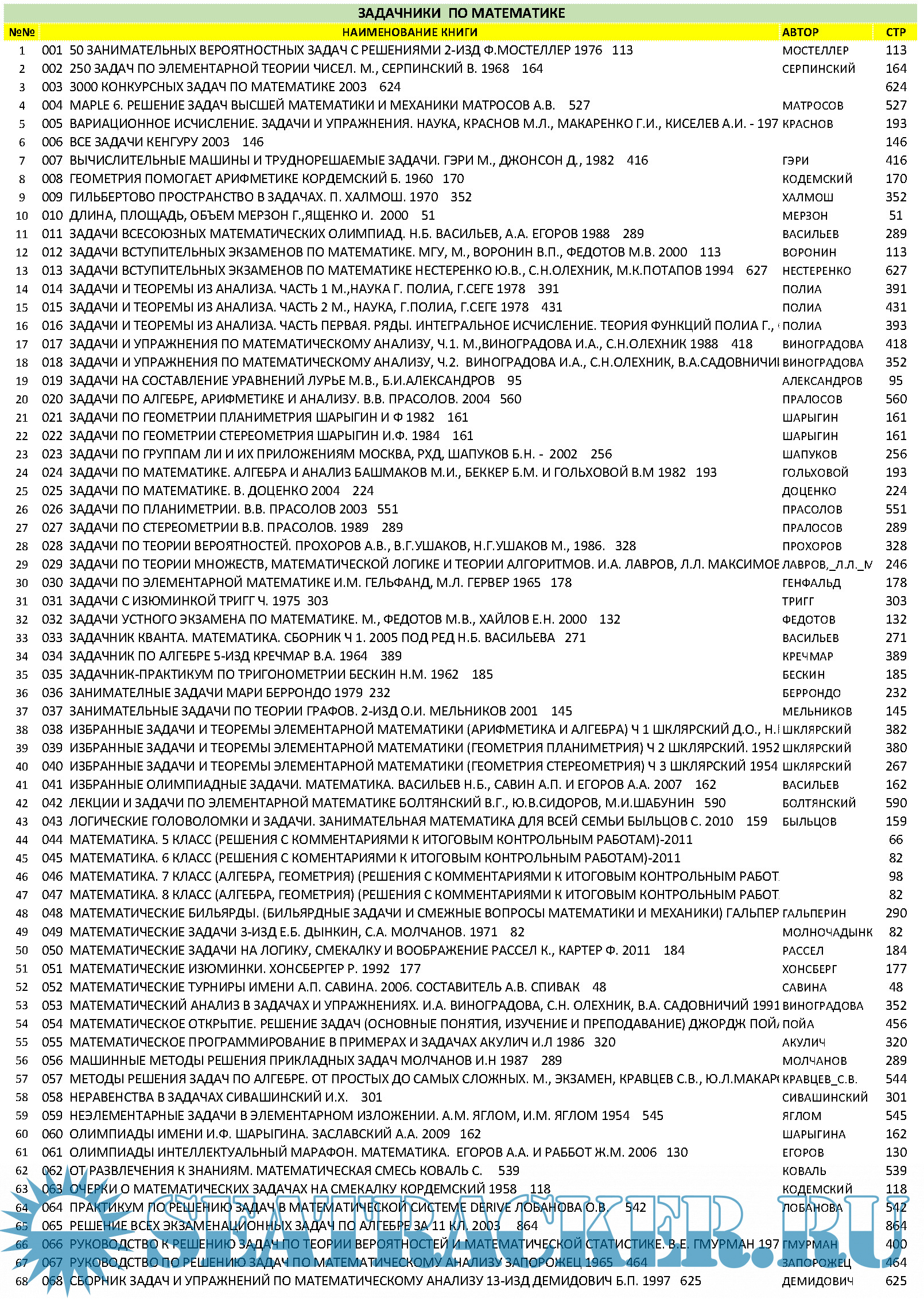 Описание: ЗАДАЧНИКИ ПО МАТЕМАТИКЕ, ФИЗИКЕ, ЛОГИКЕ ДЛЯ СРЕДНЕЙ ШКОЛЫ И ВУЗОВ ( ВСЕГО 235 КНИГ, 51558 СРАНИЦ)