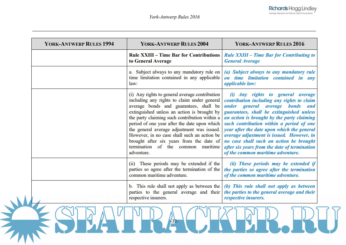 Year: 2016 Language: english Author: Richards Hogg Lindley Genre: Guide Publisher: Richards Hogg Lindley Format: PDF Quality: eBook Pages count: 34 Description: YAR 2016 compared with 1994 & 2004 Rules in tabular format. "The YARs 2016 include a number of minor changes that include an amended numbering system and greater consistency in the terms used for example the word "allowed" is now used throughout in place of "admitted". These minor changes do not alter the meaning of the Rules and we have therefore not highlighted them. The significant changes and additions are shown in bold blue italic type. The 2016 Rules include variations in the text used in both the 1994 and 2004 Rules, however, in the interests of clarity and in view of the much greater usage of the 1994 Rules, the changes are indicated taking the 1994 Rules as the 'original' text. "