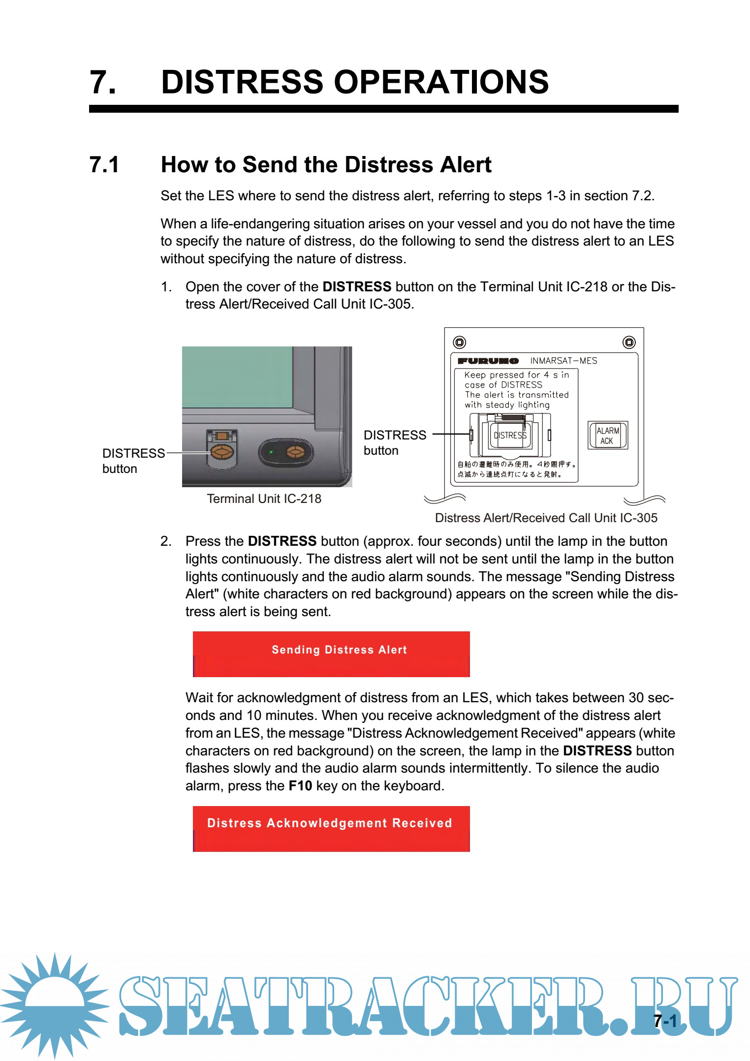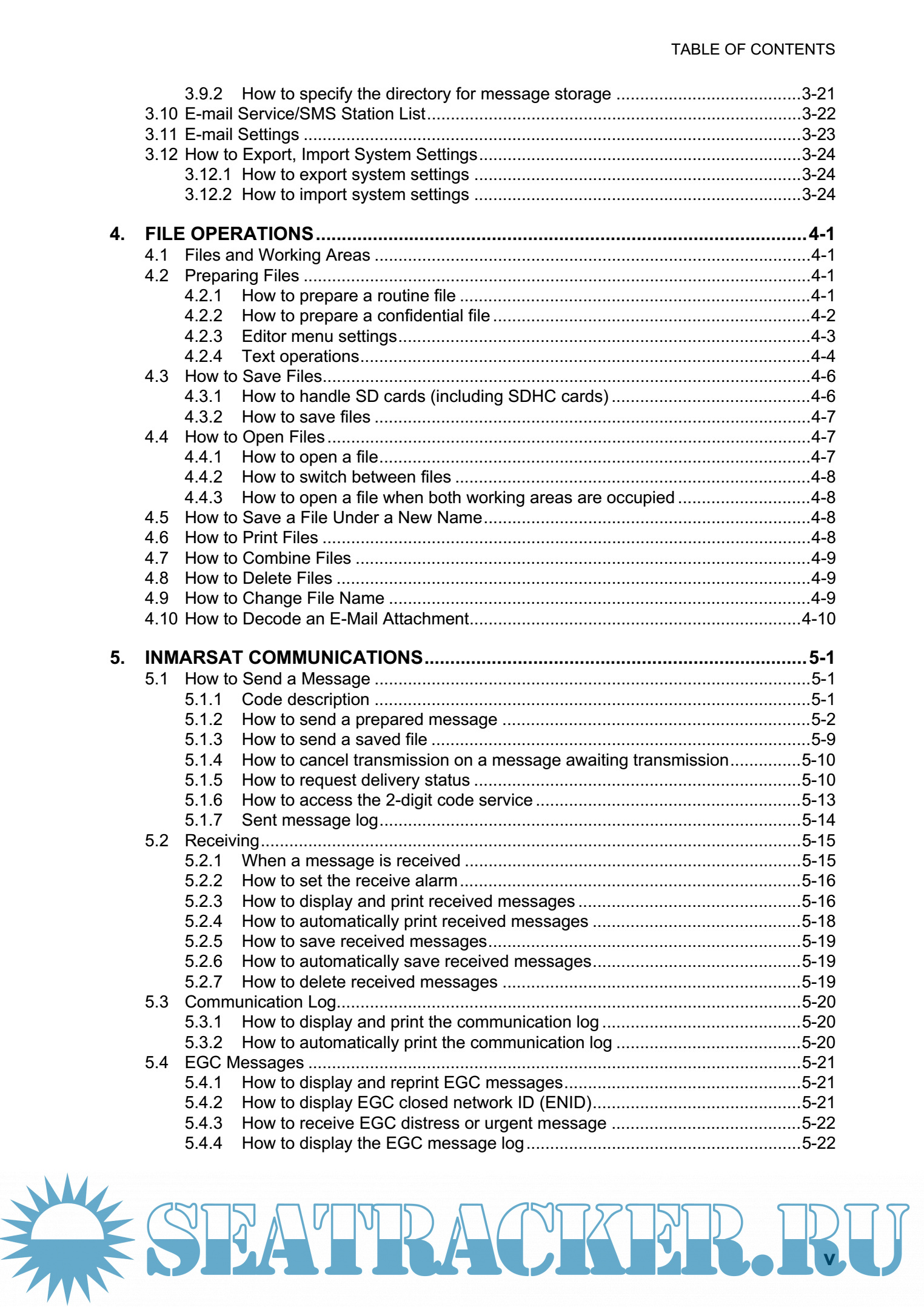 Year: 2012 Language: english Author: Furuno Genre: Manual Publisher: Furuno Edition: A1 Format: PDF Quality: eBook Pages count: 167 Description: Mainly consisting of an antenna unit and a terminal unit, the FELCOM18 provides the full range of distress and general communication services for mobile and fixed terrestrial subscribers in the Inmarsat C communication network. Its compact size permits installation where space is limited. The main features are • Complies with Conforms to the following standards: IMO A.807(19), MSC.68(68) Annex 4, MSC/Circ 862, IMO A.694(17), IEC 60945-4, IMO A.664(16), IEC 61162-1. • Full coverage of Inmarsat-C services: EGC, Internet E-mail, distress messaging, polling, data reporting. • GMDSS compliant with optional printer, AC/DC power supply unit • Terminal unit accepts a wide variety of external equipment: Distress Alert/Received Call Unit IC-305, Alarm Unit IC-350, Alarm Unit IC-306, PC, navigator, etc. • Shipborne LAN Ethernet • Store-and-forward telex communication (public telex network) • GPS receiver (option) built in the terminal unit provides GPS-generated position. • Data reporting and polling • EPADR (Enhanced Pre-Assigned Data Reporting) applicable. • VMS (Vessel Monitoring Service) applicable. • Remote distress alert unit