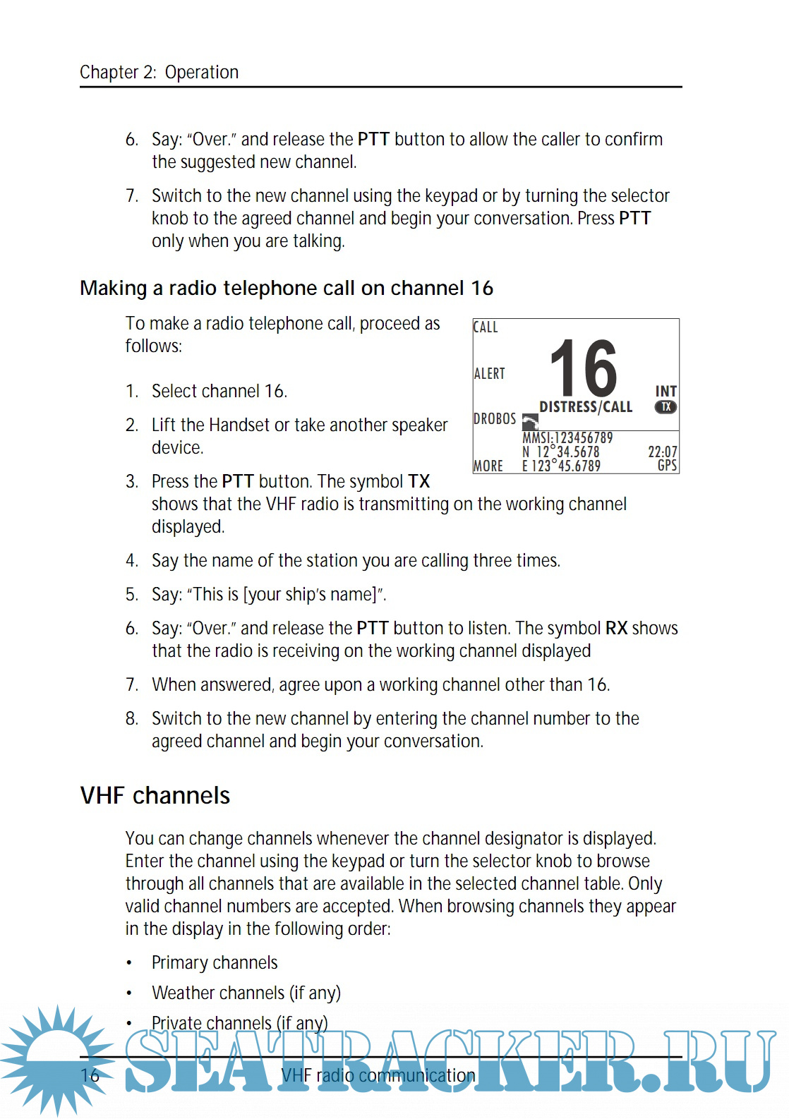 The VHF radio is a simplex/semi duplex VHF radio. It is designed with an