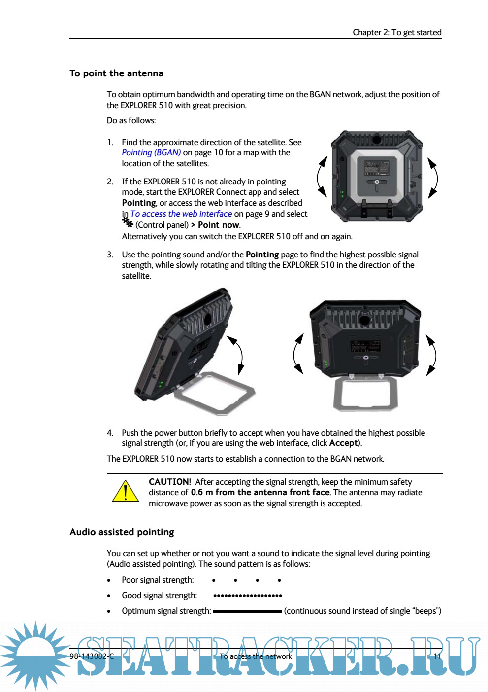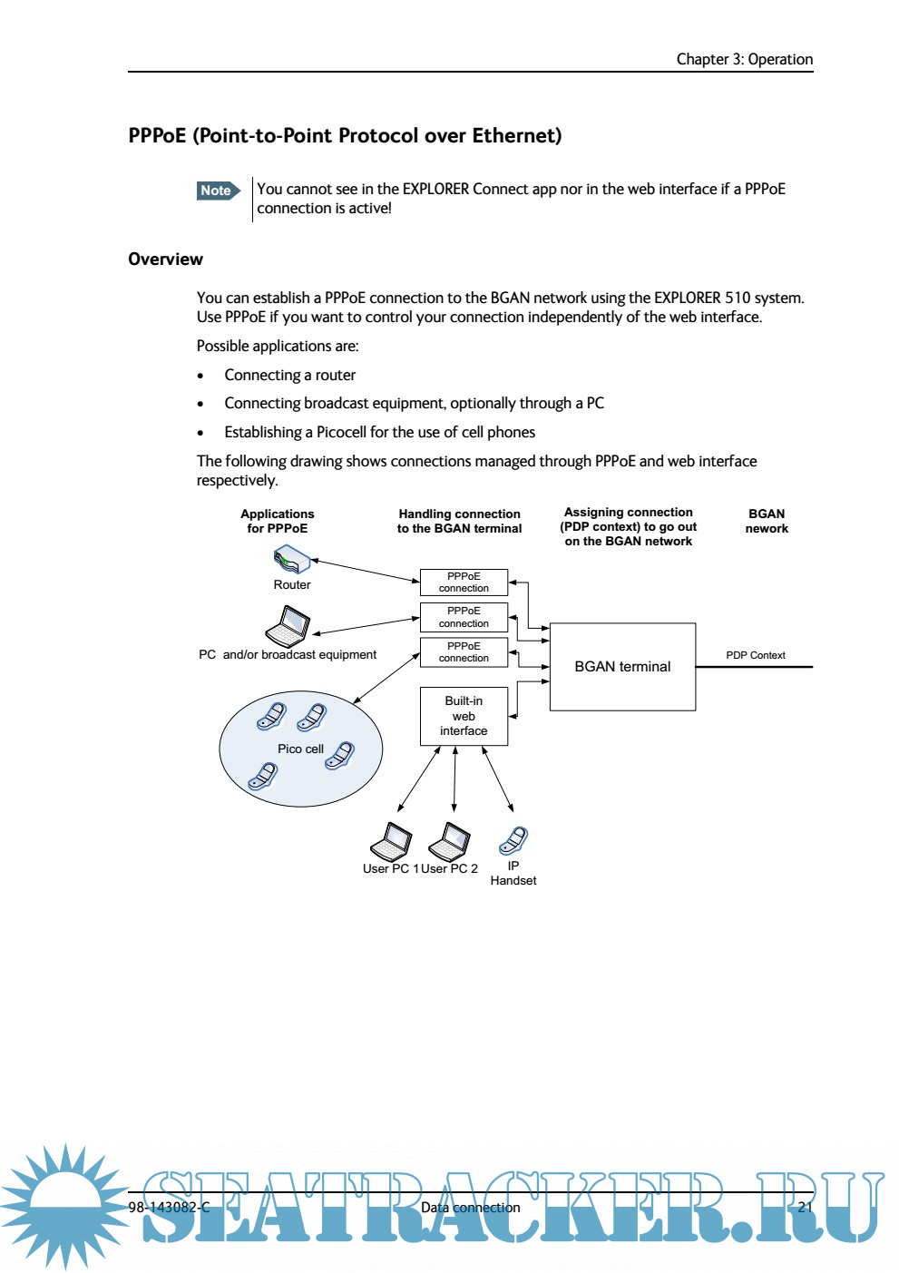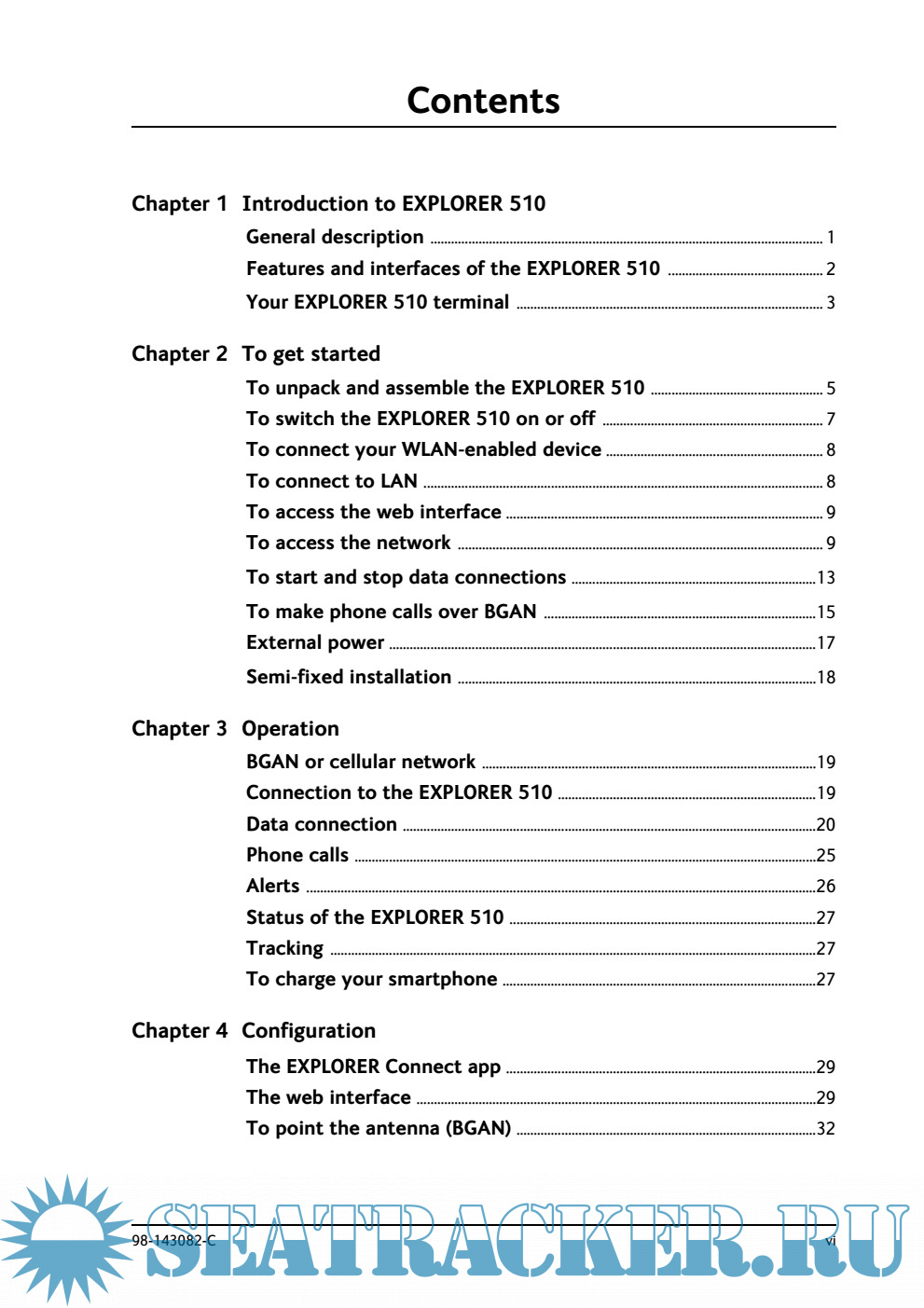 Year: 2015 Language: english Author: Thrane & Thrane A/S Genre: Manual Publisher: Thrane & Thrane A/S Format: PDF Quality: eBook Pages count: 111 Description: The EXPLORER 510 is the smallest EXPLORER BGAN terminal ever and is the ideal combination of performance and portability. It provides simultaneous high quality voice and broadband access at speeds up to 464 kbps. The durable magnesium casing and a dust and water resistant design makes the EXPLORER 510 the perfect choice when working off the beaten track but still dependent on a reliable connection. Your equipment connects to the EXPLORER 510 with wireless LAN (WLAN). WLAN is the primary connection between your equipment and the EXPLORER 510. However, a USB interface is also available, with possible connection of LAN using a USB to LAN Converter Cable (included). The EXPLORER 510 provides access to up to 464 kbps Standard data and 32, 64 and 128 kbps Streaming data and may be used for: • Broadcasting • Internet browsing • E-mail • Phone services (using WLAN or LAN) • File transfers • Video conference and Streaming • VPN (Virtual Private Network) access to corporate servers The EXPLORER 510 can withstand severe environmental conditions such as humidity, dust, extreme weather and changing temperatures. It is small in size and fits easily into a backpack or similar.