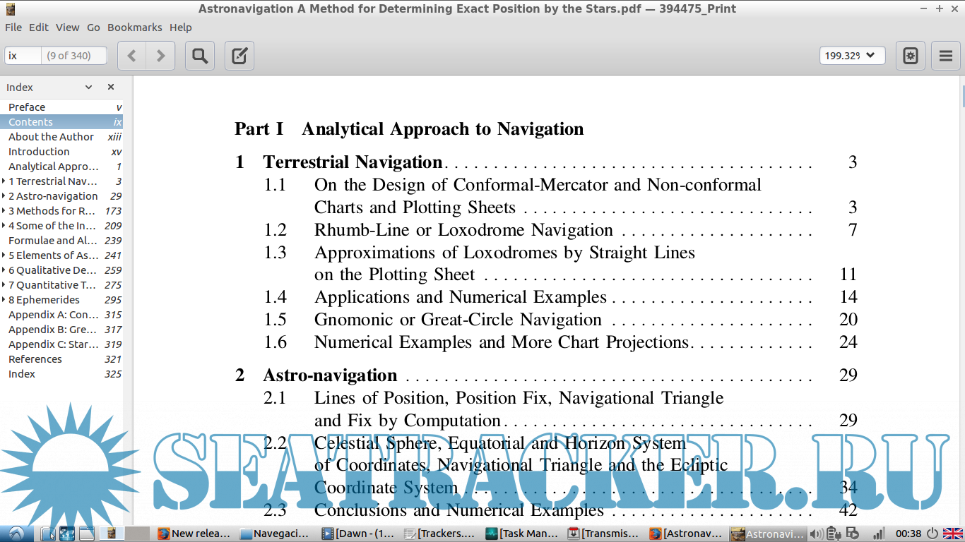 Contents Part I Analytical Approach to Navigation 1 Terrestrial Navigation . . . . . . . . . . . . . . . . . . . . . . . . . . . . . . . . . . 1.1 On the Design of Conformal-Mercator and Non-conformal Charts and Plotting Sheets . . . . . . . . . . . . . . . . . . . . . . . . . . 1.2 Rhumb-Line or Loxodrome Navigation . . . . . . . . . . . . . . . . 1.3 Approximations of Loxodromes by Straight Lines on the Plotting Sheet . . . . . . . . . . . . . . . . . . . . . . . . . . . . . . 1.4 Applications and Numerical Examples . . . . . . . . . . . . . . . . . 1.5 Gnomonic or Great-Circle Navigation . . . . . . . . . . . . . . . . . 1.6 Numerical Examples and More Chart Projections . . . . . . . . . 2 Astro-navigation . . . . . . . . . . . . . . . . . . . . . . . . . . . . . . . . . . . . . . . . . . 2.1 Lines of Position, Position Fix, Navigational Triangle and Fix by Computation . . . . . . . . . . . . . . . . . . . . . . . . . . . . . . . . 2.2 Celestial Sphere, Equatorial and Horizon System of Coordinates, Navigational Triangle and the Ecliptic Coordinate System . . . . . . . . . . . . . . . . . . . . . . . . . . . . . . . . . . . . 2.3 Conclusions and Numerical Examples . . . . . . . . . . . . . . . . . . . . . 2.4 The Use of the Exact Equations for Finding the Position at Sea or Air by Employing Two or More Altitude Measurements Together with the Corresponding Measurements of Time . . . . . . . 2.5 Conclusions and Numerical Examples . . . . . . . . . . . . . . . . . . . . . 2.6 An Exact Method Based on Cartesian Coordinates and Vector Representations . . . . . . . . . . . . . . . . . . . . . . . . . . . . . . 2.7 Numerical Examples and Conclusions . . . . . . . . . . . . . . . . . . . . . 2.8 On Approximate Solutions for Finding the Position at Sea or Air by Employing Two or More Altitude Observations . . . . . . 2.9 An Approximate Method Based on Matrices and the Least Square Approximation . . . . . . . . . . . . . . . . . . . . . . . . . . . . . . . . . 2.10 Sumner’s Line of Assumed Position Method as Scientific Method . . . . . . . . . . . . . . . . . . . . . . . . . . . . . . . . . . . . . . . . . . . . . Contents 2.11 Numerical Example and Logarithmic Algorithm . . . . . . . . . . . . . . 2.12 How an Approximate Position at Sea or Air Can Be Found if an Approximate Value for the Azimuth or the Parallactic Angle Is Known in Addition to One Altitude . . . . . . . . . . . . . . . . 2.13 On the Effect of a Change in Time on the Altitude and Azimuth . . . . . . . . . . . . . . . . . . . . . . . . . . . . . . . . . . . . . . . . . 2.14 How to Determine Latitude at Sea or Air Without the Use of a Clock . . . . . . . . . . . . . . . . . . . . . . . . . . . . . 2.15 On Calculating the Interval Between Meridian Passage and Maximum Altitude and Finding Approximate Longitude and Latitude of a Moving Vessel, and Longitude by Equal Altitudes . . . . . . . . . . . . . . . . . . . . . . . . . . . . . . . . . . . . . . . . . . . . 2.16 To Find Latitude by Observing Polaris When Exact UTC and Longitude or an Approximation Is Available . . . . . . . . . . . . . 2.17 The Most Probable Position When Only One LOP and DRP Are Known . . . . . . . . . . . . . . . . . . . . . . . . . . . . . . . . . . 2.18 How to Calculate the Time of Rising and Setting of Celestial Objects and How to Use the Measured Time of These Phenomena to Find Longitude . . . . . . . . . . . . . . . . . . . . . . . . . . . 2.19 On the Identification of Stars and Planets . . . . . . . . . . . . . . . . . . . 2.20 How to Navigate Without a Sextant . . . . . . . . . . . . . . . . . . . . . . . 2.21 On Finding Time and Longitude at Sea, the Equation of Computed Time (ECT), and Being Completely Lost . . . . . . . . 3 Methods for Reducing Measured Altitude to Apparent Altitude . . . . 3.1 Navigational Refraction that Includes Astronomical Refraction for Low Altitude Observations . . . . . . . . . . . . . . . . . . . . . . . . . . . 3.2 The Dip of the Horizon as a Function of Temperature and Pressure . . . . . . . . . . . . . . . . . . . . . . . . . . . . . . . . . . . . . . . . . 3.3 Planetary Parallax and Semi-diameter of the Sun and Moon . . . . 3.4 Time and Timekeeping . . . . . . . . . . . . . . . . . . . . . . . . . . . . . . . . . 3.5 On the Minimization Procedure for the Random Errors in Determining Altitude and Time . . . . . . . . . . . . . . . . . . . . . . . . 4 Some of the Instruments and Mathematics Used by the Navigator . . . . . . . . . . . . . . . . . . . . . . . . . . . . . . . . . . . . . . . . . . 4.1 Some of the Formulae and Mathematics Used by the Navigator . . . . . . . . . . . . . . . . . . . . . . . . . . . . . . . . . . . . . . 4.2 Some of the Instruments Used by the Navigator . . . . . . . . . . . . . . Part II Formulae and Algorithms of Positional Astronomy 5 Elements of Astronomy as Used in Navigation . . . . . . . . . . . . . . . . . . 5.1 Some Basic Concepts Describing the Motion of the Earth Around the Sun . . . . . . . . . . . . . . . . . . . . . . . . . . . . . . . . . . . . . . An Approximation to the Time of Transit of Aries at Greenwich and the Greenwich Hour Angle GHA of ♈ . . . . . . . . . . . . . . . . . The Right Ascension of RA of the Mean Sun, Mean Longitude, Mean Anomaly, Longitude of Perigee, Longitude of Epoch and Kepler’s Equation . . . . . . . . . . . . . . . . . . . . . . . . . . . . . . . . . The Equation of the Center, Equation of Time and True Longitude of the Sun . . . . . . . . . . . . . . . . . . . . . . . . . . . . . . . . . . Numerical Examples and Other Concepts of Time . . . . . . . . . . . . An Approximate Method for Finding the Eccentricity, the Longitude of the Perigee and the Epoch . . . . . . . . . . . . . . . . . Some Improved Formulae for the Equation of Time and Center . . . . . . . . . . . . . . . . . . . . . . . . . . . . . . . . . . . . . . . . . . 6 Qualitative Description: The Relevant Astronomical Phenomena . . . 6.1 On the Change of the Elements of the Orbit with Tim
