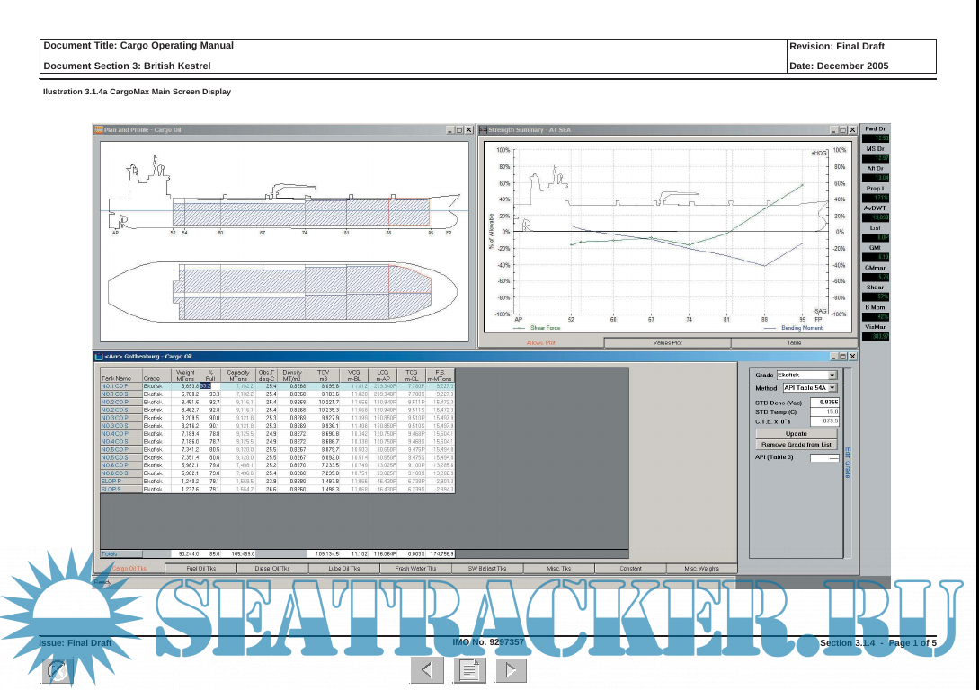 Year: 2005 Language: english Author: Worldwide Marine Technology ltd. Genre: Documentation Format: PDF Quality: eBook Pages count: 194 Description: The purpose of this ‘one-stop’ manual is to assist, inform and guide competent ship’s staff, and trainees in the operation of the systems and equipment on board and to provide additional information that may not be otherwise available. In some cases, the competent ship’s staff and trainees may be initially unfamiliar with this vessel and the information in this manual is intended to accelerate the familiarisation process. It is intended to be used in conjunction with shipyard drawings and manufacturer’s instruction manuals, bulletins, Fleet Regulations, the ship’s Captain’s and Chief Engineer’s Standing Orders and in no way replaces or supersedes these publications, all of which take precedence over this manual. Information relevant to the operation of the British Kestrel has been carefully collated in relation to the systems of the vessel and is presented in three on board volumes consisting of BRIDGE SYSTEMS AND EQUIPMENT OPERATING MANUAL, CARGO OPERATING MANUAL and MACHINERY OPERATING MANUAL. This release contains Cargo Operating Manual. The Cargo Operating Manual is designed to complement Marpol 73/78, ISGOTT and Company Regulations. The vessel is constructed to comply with MARPOL 73/78. These regulations can be found in the Consolidated Edition, 1991 and in the Amendments dated 1992, 1994, 1995, 1998, 2001, and 2003.