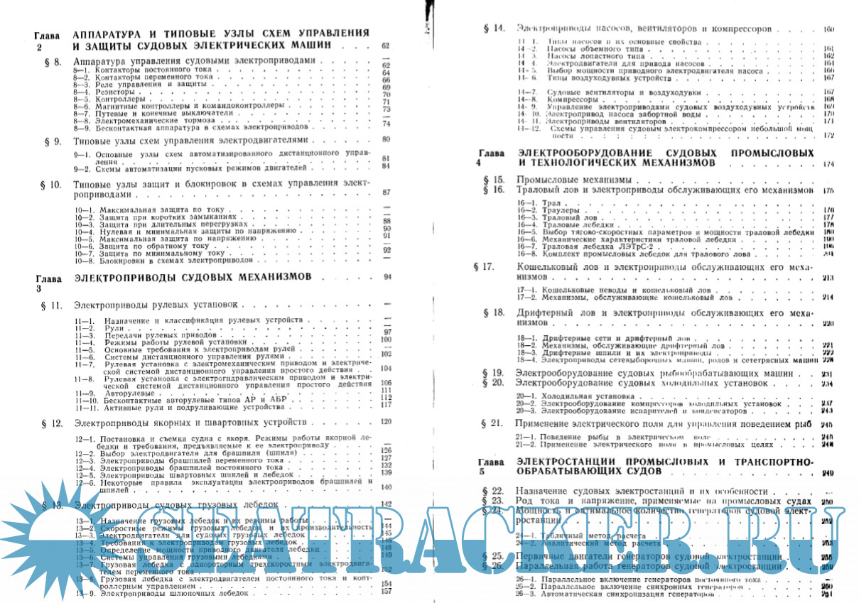 Описание: В книге описаны условия работы и связанный с ними особенности исполнения судового электрооборудования, даются характеристики судовых электрических машин. Особое внимание уделено вопросам эксплуатации электрооборудования на судах. Подробно рассмотрены условия работы и нагрузочные режимы электроприводов палубных промысловых и вспомогательных механизмов, схемы типичных электроприводов рулей, брашпилей, грузовых лебедок, насосов, вентиляторов и других электрофицированных механизмов современных промысловых и транспортных судов. Освещены вопросы применения для промысловых целей электрического поля и света.