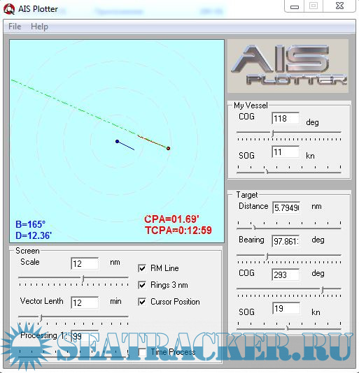 Description: The Program is intented for plotting AIS data and calculation CPA and TCPA info for plotted target