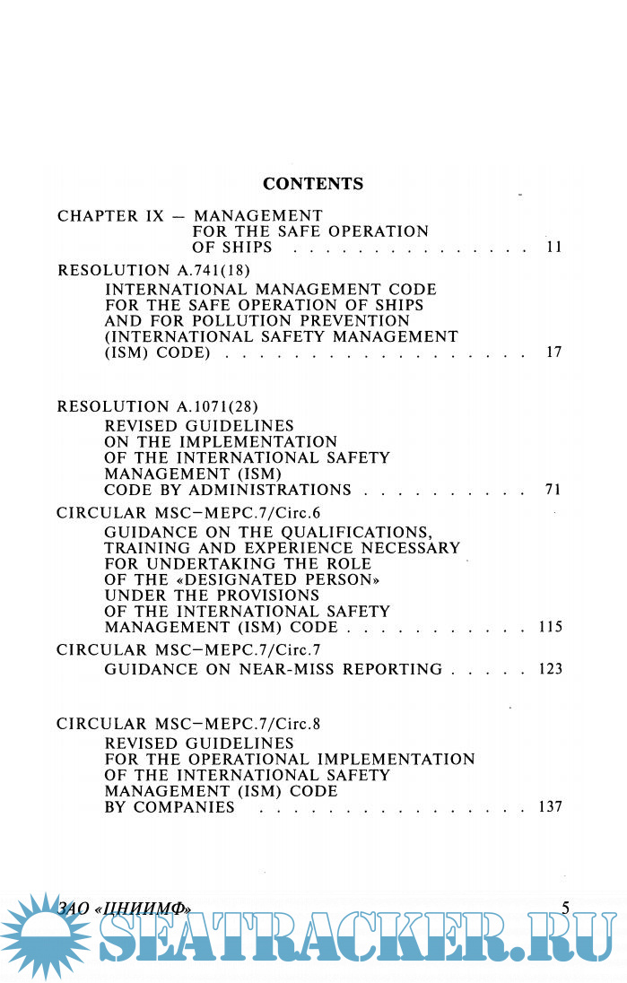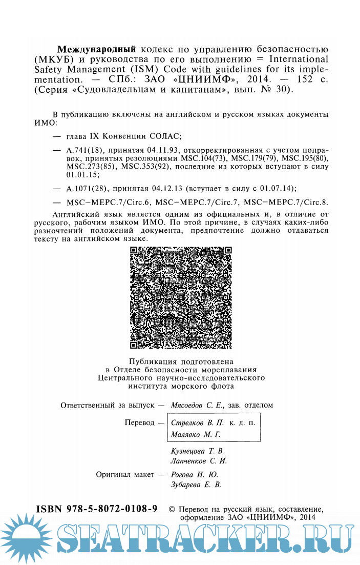 Описание: Цель данного Кодекса состоит в обеспечении международного стандарта по управлению безопасной эксплуатацией судов и предотвращением загрязнения.