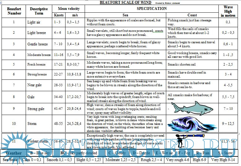 Year: - Language: english Author: Riabcev Aleksandr Format: DOC Quality: eBook Number of pages: 1 Description: Very useful and compact Beaufort Scale for Navigators Additional info: Kindly ask you to press button Thank You