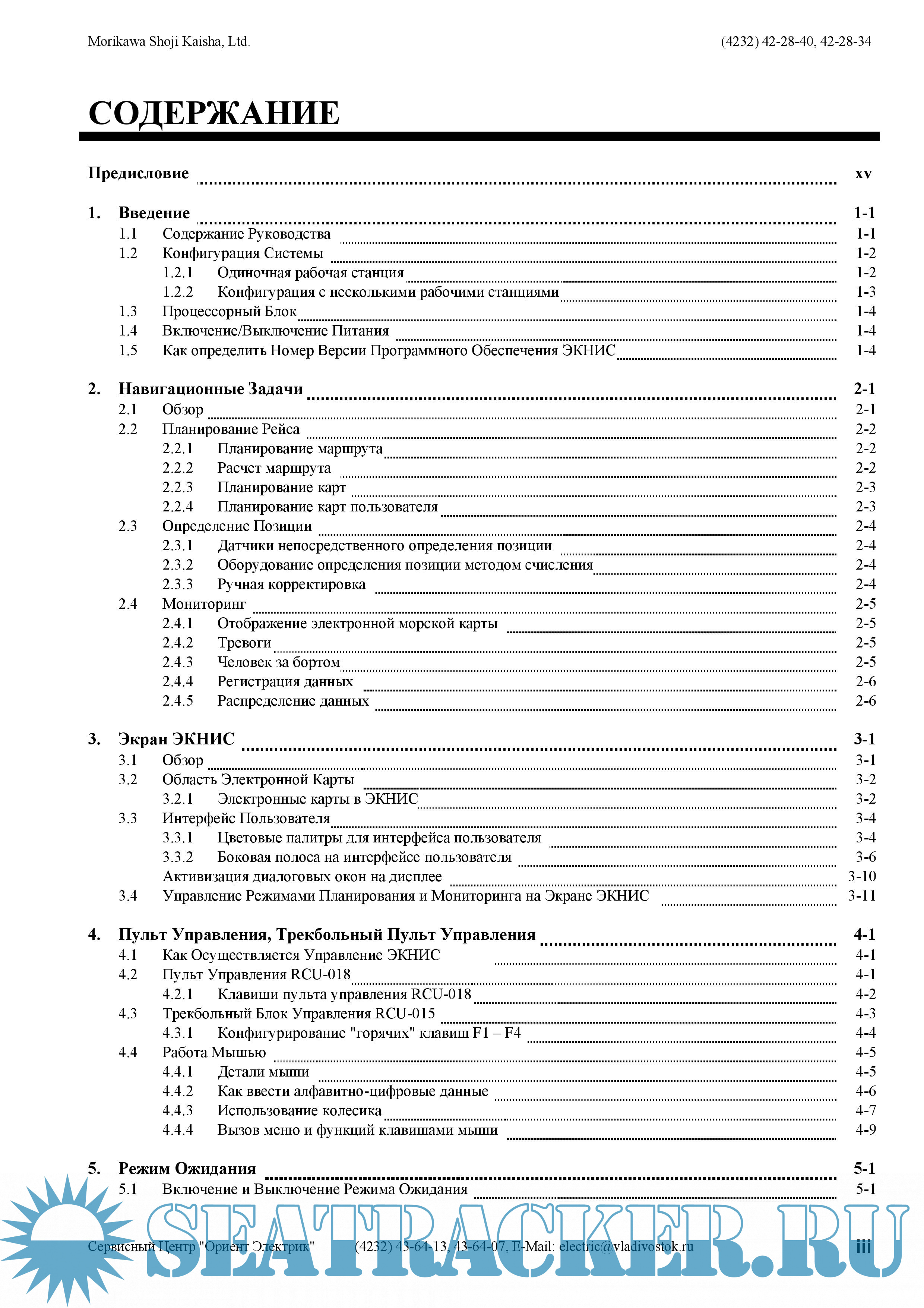 Год выпуска: 2004 Язык: русский Автор: Furuno Жанр: Руководство Формат: PDF Качество: Изначально компьютерное (eBook) Количество страниц: 582 Описание: ЭКНИС серииFEA-2107 – это продукт огромного опыта фирмыFURUNO в области компьютерной технологии и морской электроники. Он отвечает требованиям РезолюцииIMO A.817(9), IEC 61174 и другим соответствующим стандартам. ЭКНИС отображает электронные карты, навигационные линии, данные САРП, цели АИС и другие навигационные данные на дисплее с высоким разрешением размером20.1 дюйма(FEA-2107) или23.1 дюйма(FEA-2807). FEA-2107-BB поставляется без монитора, позволяя вам использовать покупной монитор по своему выбору. Основные особенности ЭКНИС следующие • Непрерывный мониторинг позиции судна через обработку многоканальным фильтром Кальмана с использованиемGPS, DPGS, SDME (морское оборудование измерения скорости и пройденного расстояния) • Функции предварительной прокладки(планирования) и мониторинга маршрута • Широкий спектр функций предупреждения, обеспечивающих более безопасную и эффективную навигацию • Возможность наложения радиолокационного изображения на электронные карты(факультативная) • Предупреждения о возможности посадки на мель, безопасные изобаты • Картографическая база данных, загружаемая и обновляемая при помощиCD ROM • Данные цели от РЛС/САРП и транспондера АИС, помогающие избежать столкновение. (Транспондер АИС и САРП) Настоящее руководство приводит следующую информацию: • Конфигурация системы • Интерпретация экрана и использование блока управления • Подготовка к выходу в рейс • Правила замены бумажных карт электронными • Управление картографическим материалом • Ручные обновления, которые используются для ручного ввода Извещений мореплавателям и предупреждений Navtex • Расчет картографических тревог • Предварительная прокладка(планирование) и мониторинг маршрута • Различные инструменты пользователя, такие как карты пользователя, лоцманские данные и навигационные инструменты • Операции по созданию резервных копий • Общая Справочная Система • Использование навигационных датчиков • Использование целей САРП • Использование целей АИС • Наложение радиолокационного изображения • Различные функции записи • Обязательная информация о принятой системе координат, используемой картами и ЭКНИС • Операции, связанные с управлением судном • Список тревог