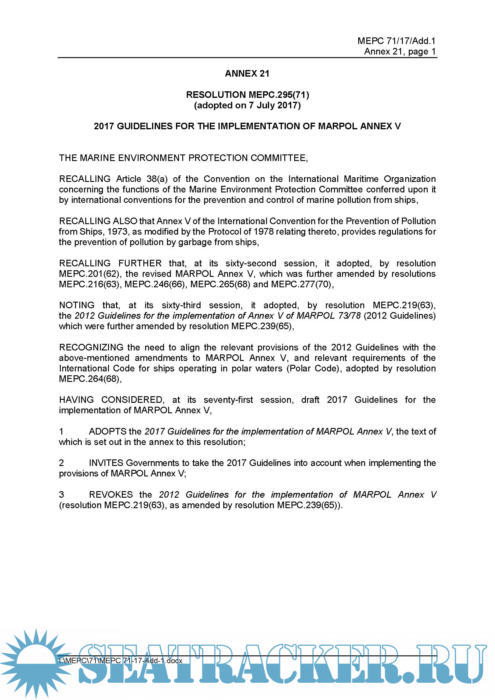 Resolution MEPC.295(71)