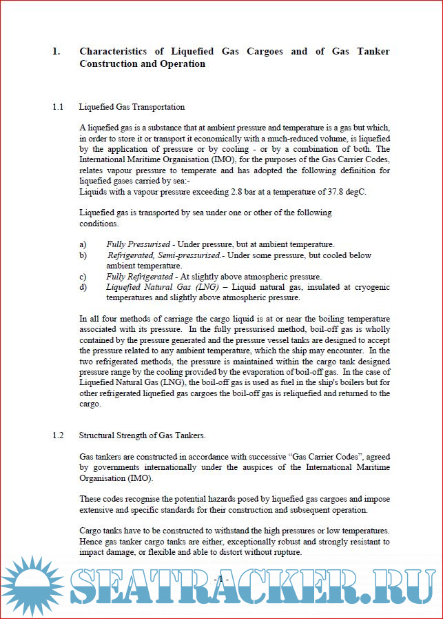 Liquefied gas tankers have unique construction features and their cargoes have unique properties that set them apart from other classes of ship and other categories of hazardous cargo.