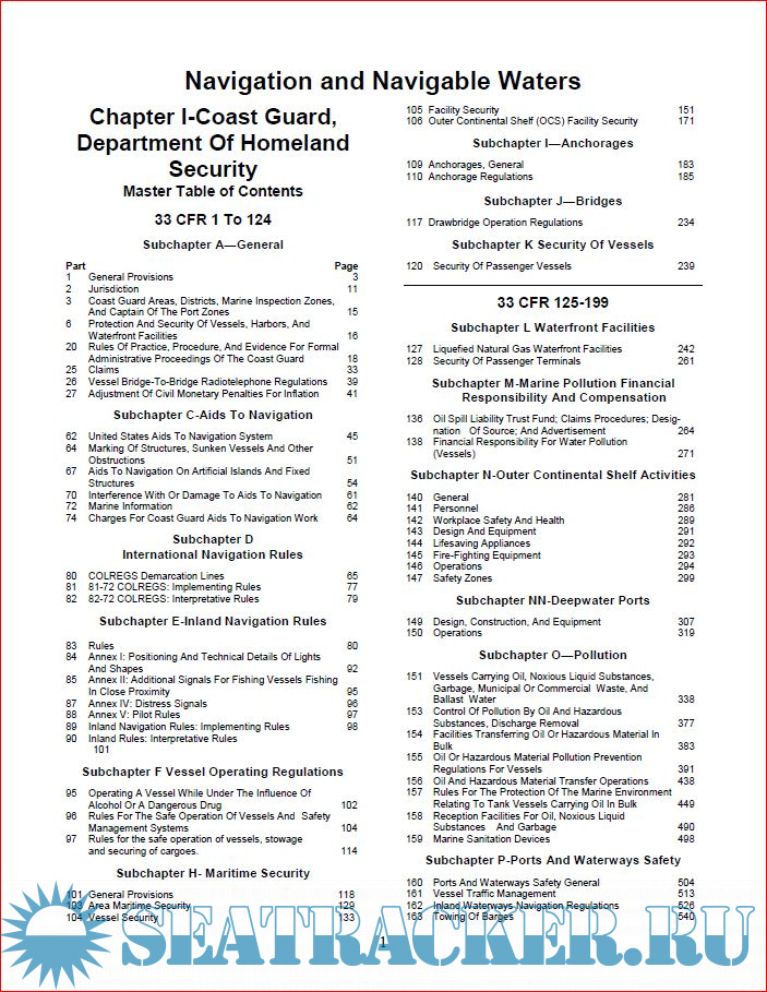 ➢ Current regulations of the United States Coast Guard, Department of