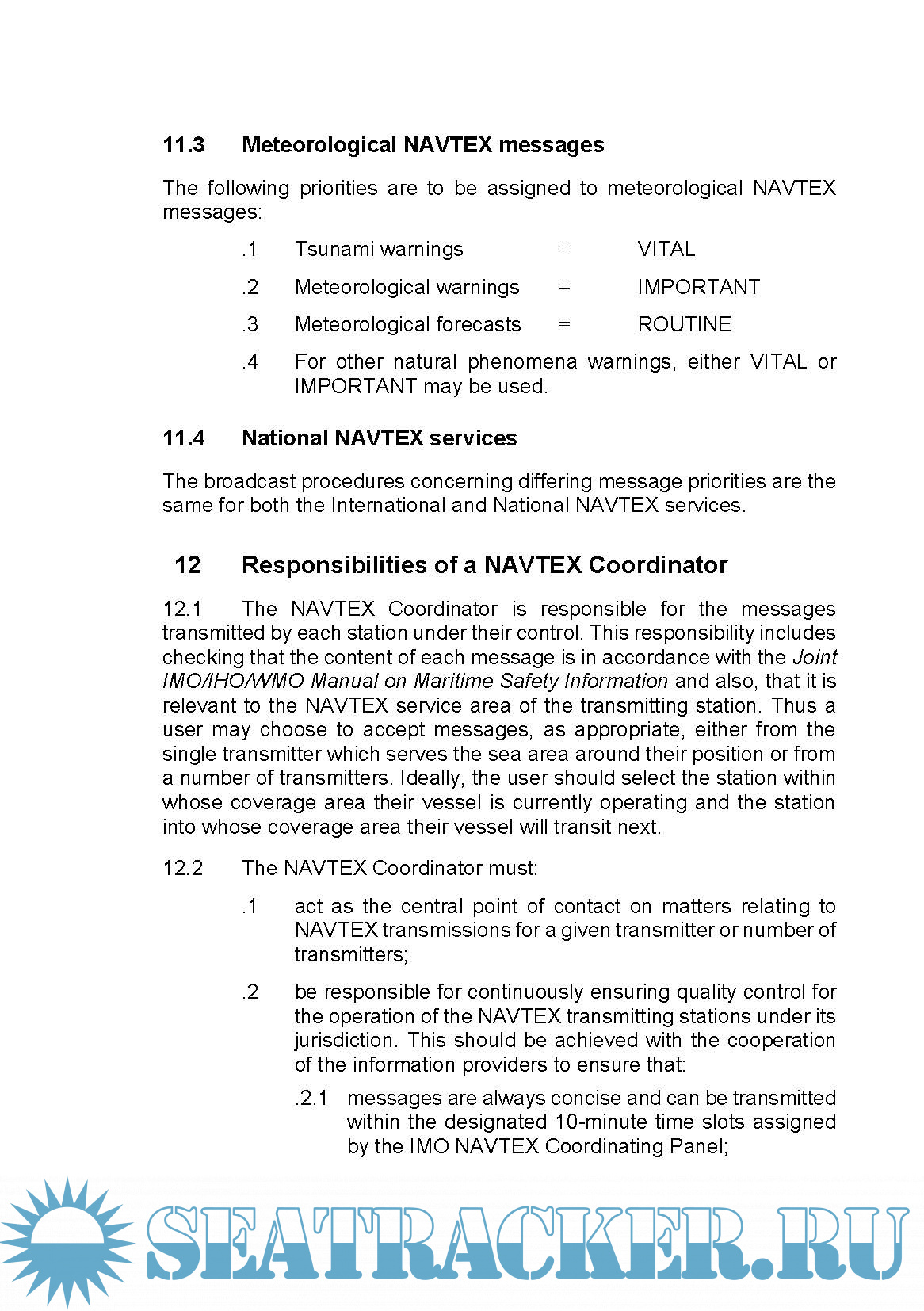 Year: 2018 Language: english Author: IMO Genre: Manual Format: PDF Quality: eBook Pages count: 65 Description: NAVTEX is an international automated direct-printing service for promulgation of Maritime Safety Information (MSI), navigational and meteorological warnings, meteorological forecasts and other urgent safety-related messages to ships. It was developed to provide a low-cost, simple and automated means of receiving MSI on board ships at sea in coastal waters. The information transmitted may be relevant to all sizes and types of vessel and the selective message-rejection feature ensures that mariners can receive MSI broadcasts which are tailored to their particular needs. NAVTEX fulfils an integral role in the Global Maritime Distress and Safety System (GMDSS) developed by the International Maritime Organization (IMO) and incorporated into the 1988 amendments to the International Convention for the Safety of Life at Sea (SOLAS), 1974, as amended, as a requirement for ships to which the Convention applies.