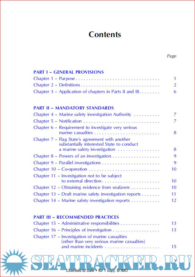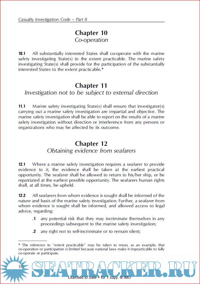 Description: The MSC adopted a new Code of the International Standards and Recommended Practices for a Safety Investigation into a Marine Casualty or Marine Incident (Casualty Investigation Code) in May 2008. Relevant amendments to SOLAS Chapter XI-1 were also adopted, to make parts I and II of the Code mandatory from 1 January 2010. Part III of the Code contains related guidance and explanatory material.