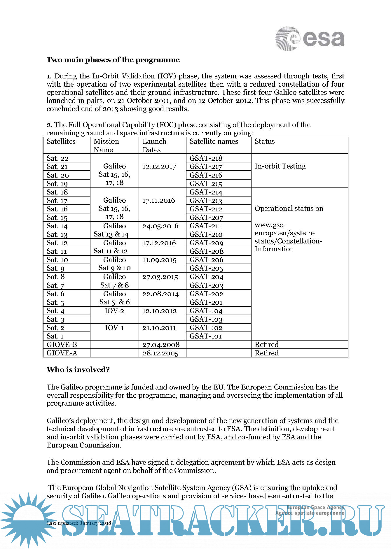 Galileo Status , (Fact Sheet 3 Pages), ESA , 2018