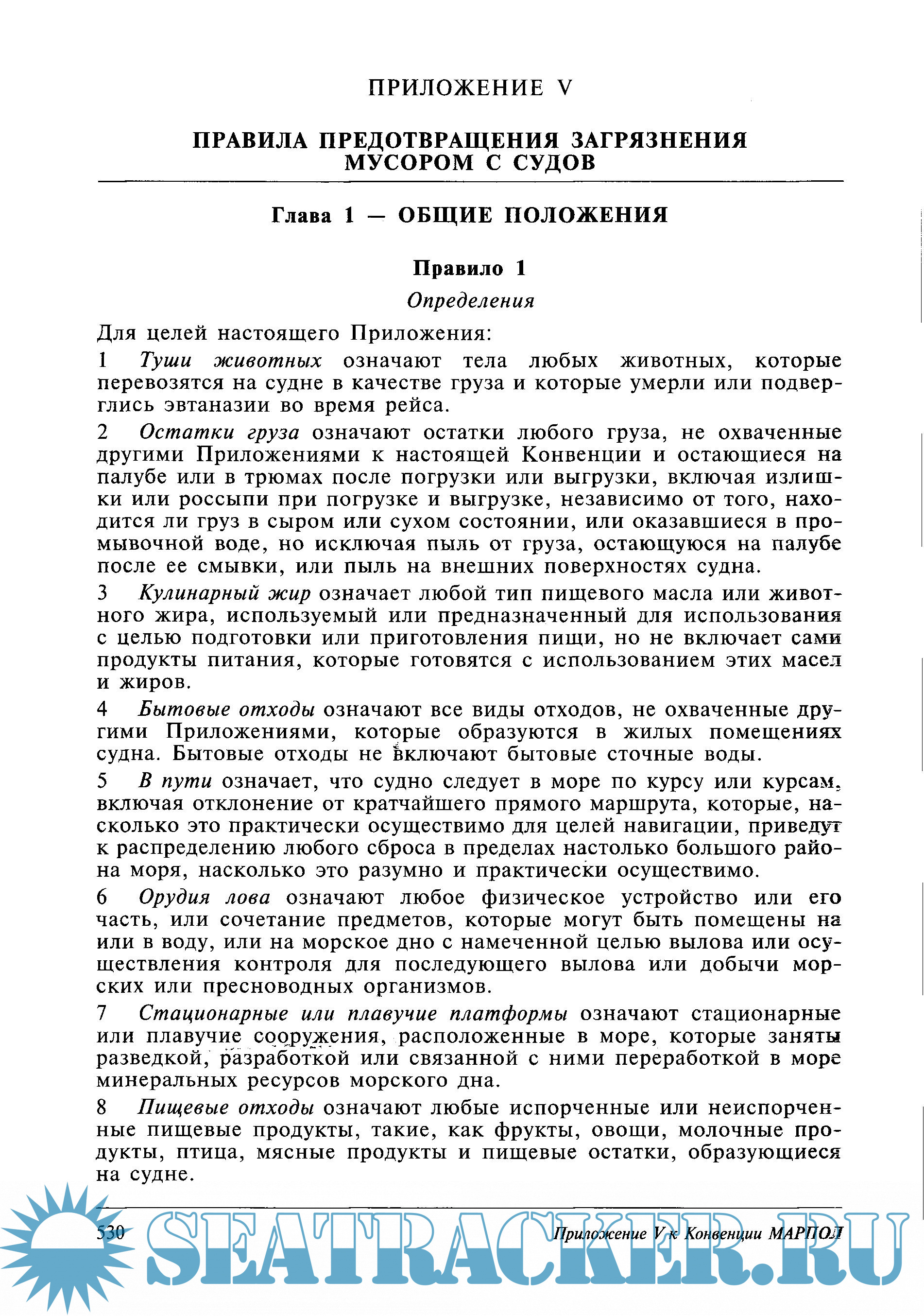 ПРИЛОЖЕНИЕ V К КОНВЕНЦИИ МАРПОЛ-73/78