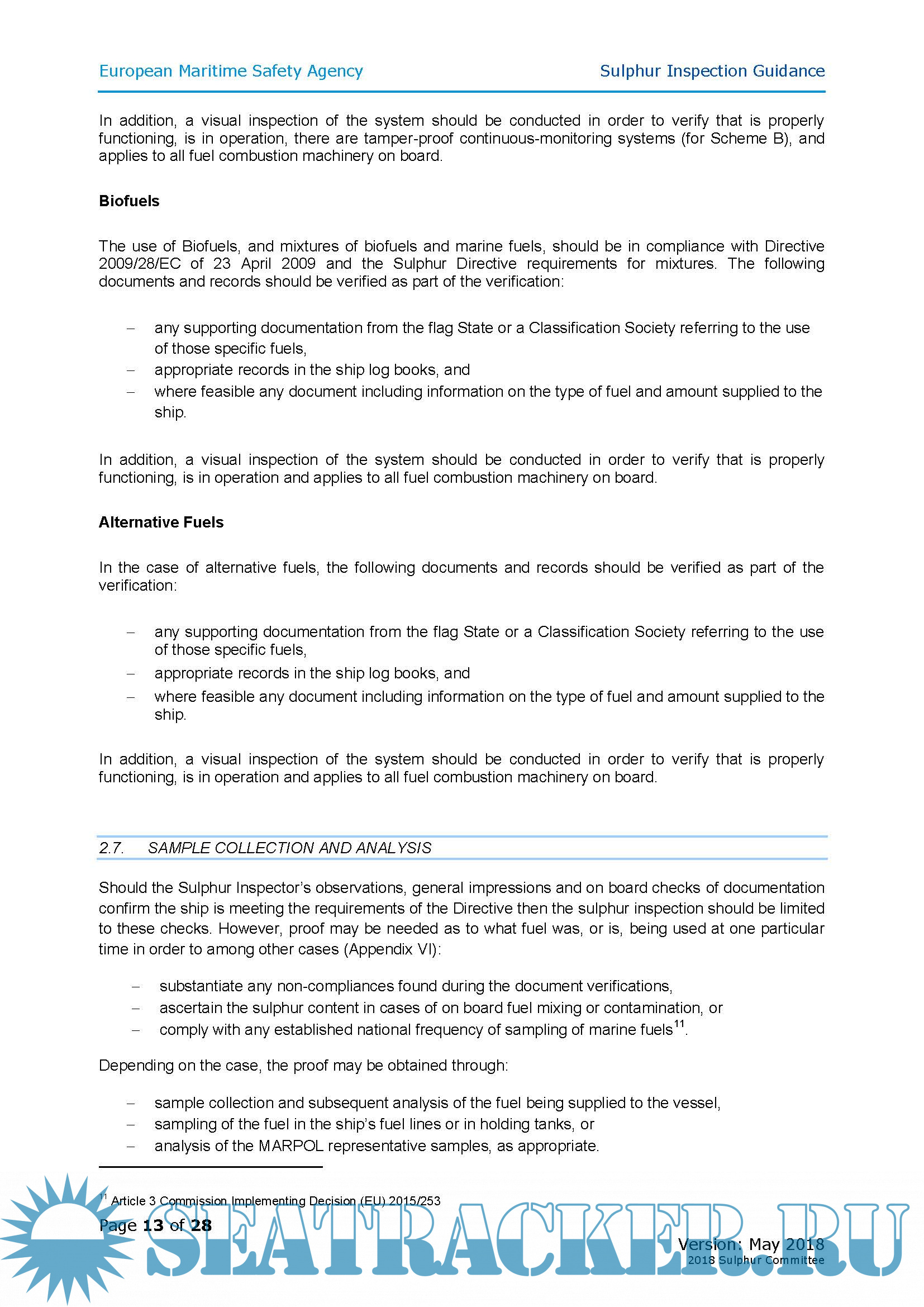 Sulphur Inspection Guidance, Directive (EU) 2016/802, version 2018