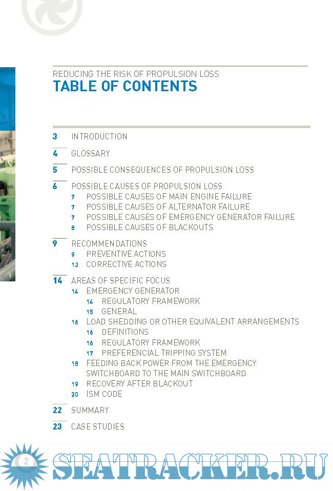 REDUCING THE RISK OF PROPULSION LOSS, Operational guidance for preventing blackouts and main engine failures
