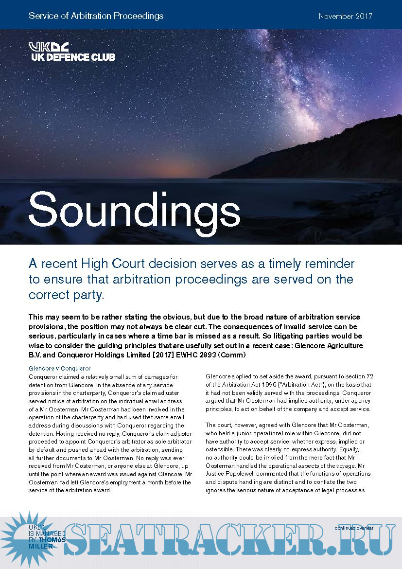 Soundings November 2017 - A recent High Court decision serves as a timely reminder to ensure that arbitration proceedings are served on the correct party. (2 Pages)