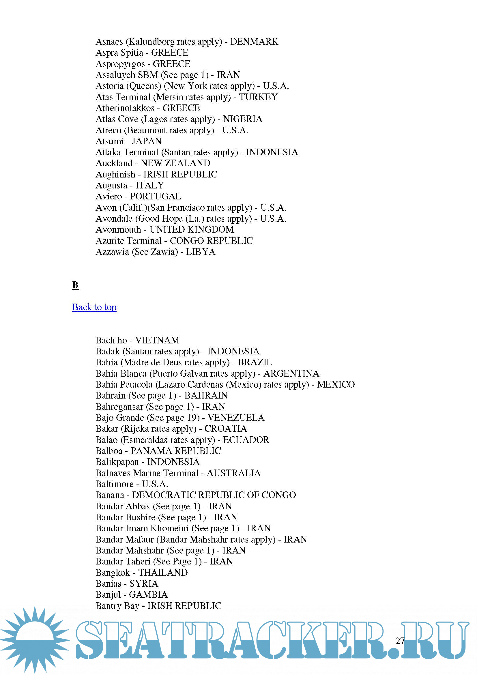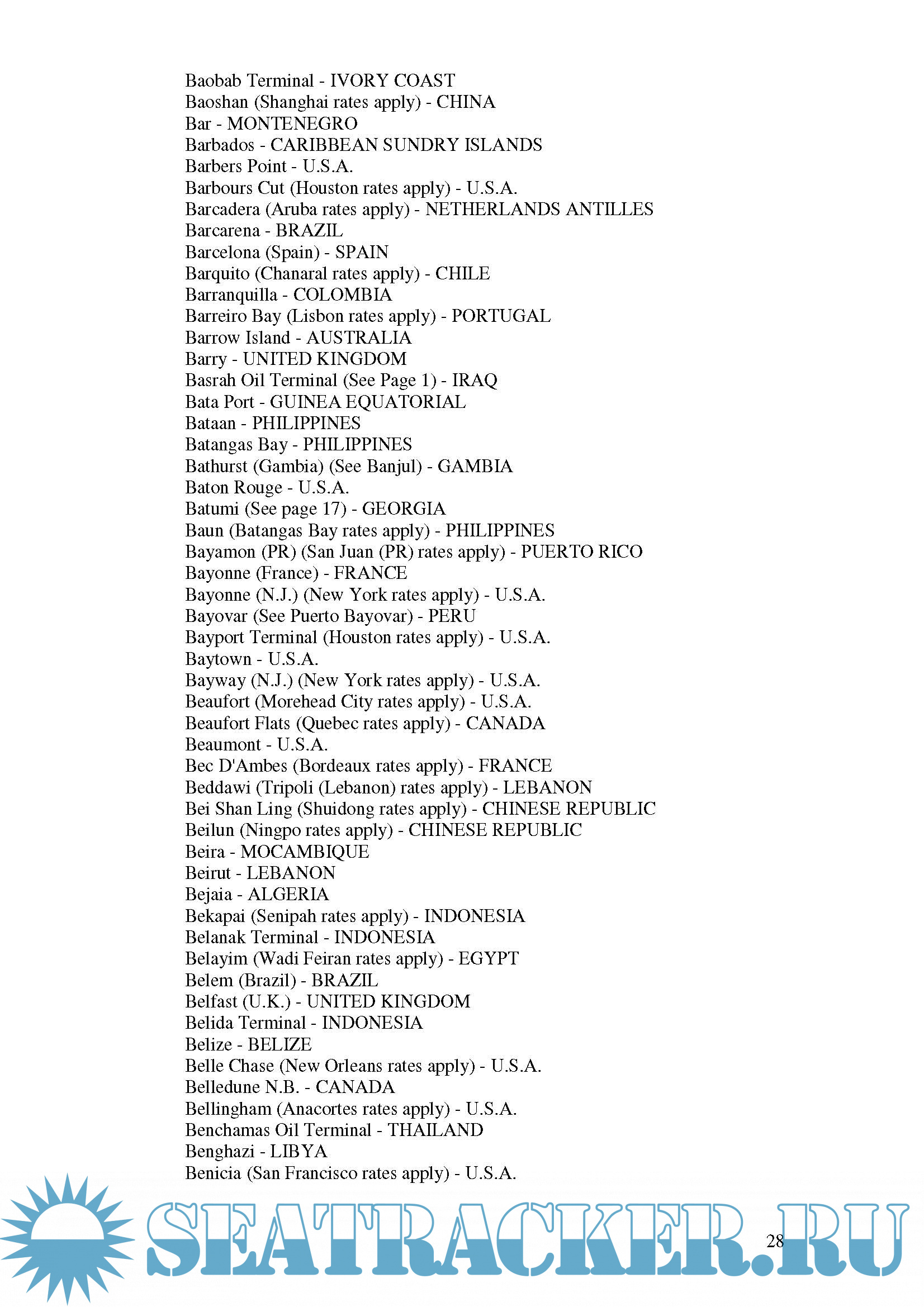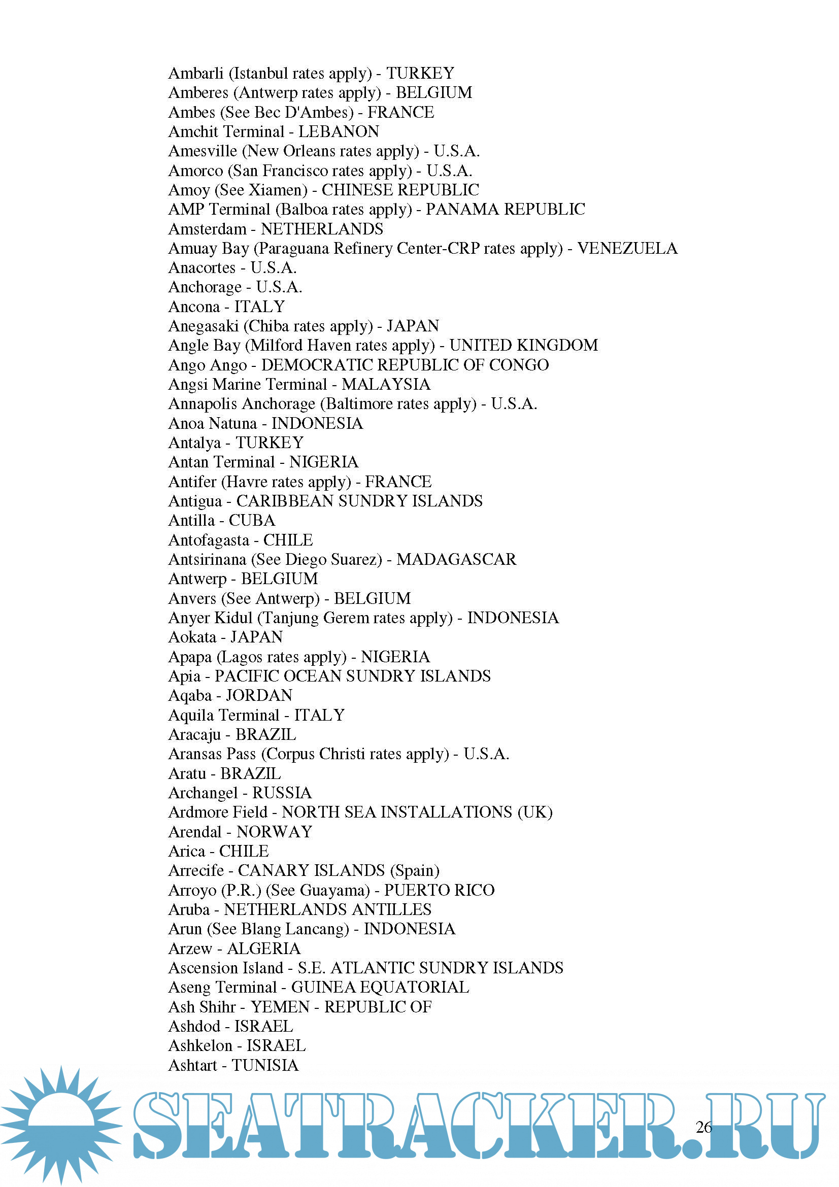 This release includes the one-fifth of the whole book. The rest four-fifths of the book that are not included in this release, present, in an alphabetic order, the flat-worldscale rate from any port of the world to all usual port destinations. Now, if for any reason, you, as a subscriber to the issuing organization, are interested in the flat wordscale rate over a route which is not included in the book, the issuing organization can quote it for you, but only if you are a subscriber of theirs.
