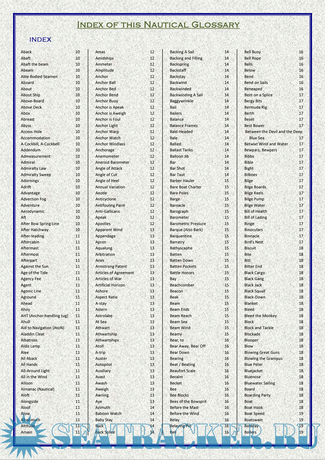 Description: It's a collection of various Nautical Terms , which is useful for the seafarers. It also contains many ancient terms in Maritime industry.