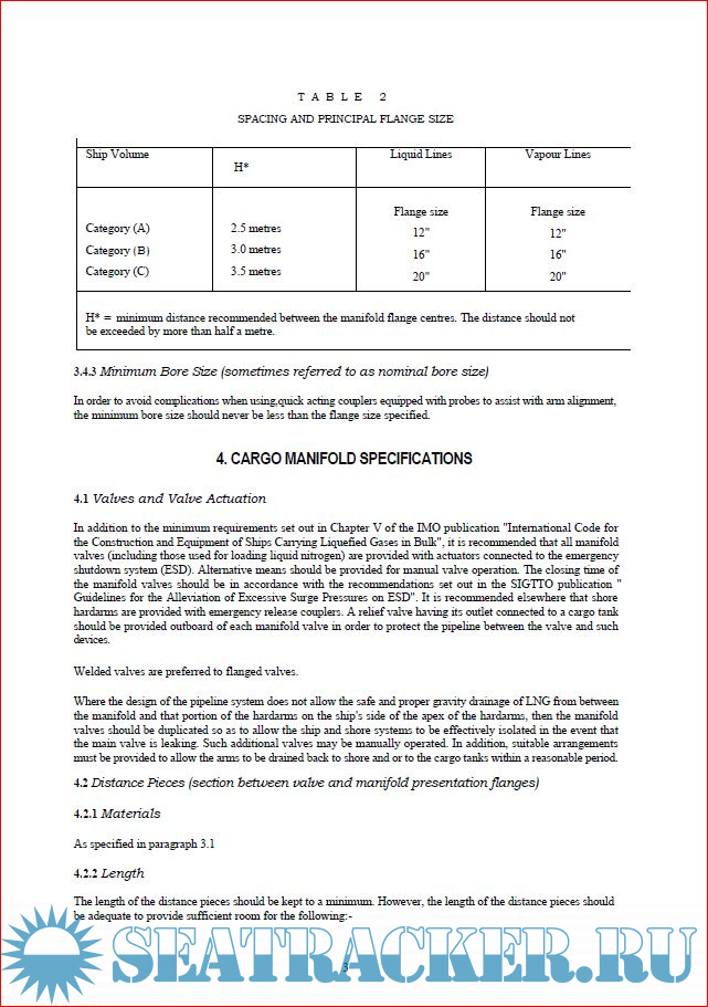 Recommendations for Manifolds for Refrigerated Liquefied Natural Gas Carriers (LNG)