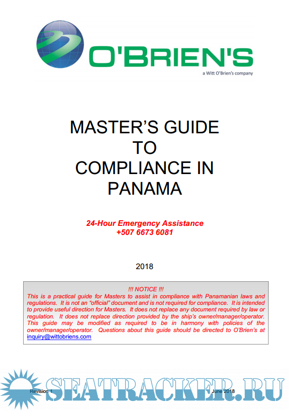 Description: This is a practical guide for Masters to assist in compliance with Panamanian laws and regulations. It is not an “official” document and is not required for compliance. It is intended to provide useful direction for Masters. It does not replace any document required by law or regulation. It does not replace direction provided by the ship’s owner/manager/operator. This guide may be modified as required to be in harmony with policies of the