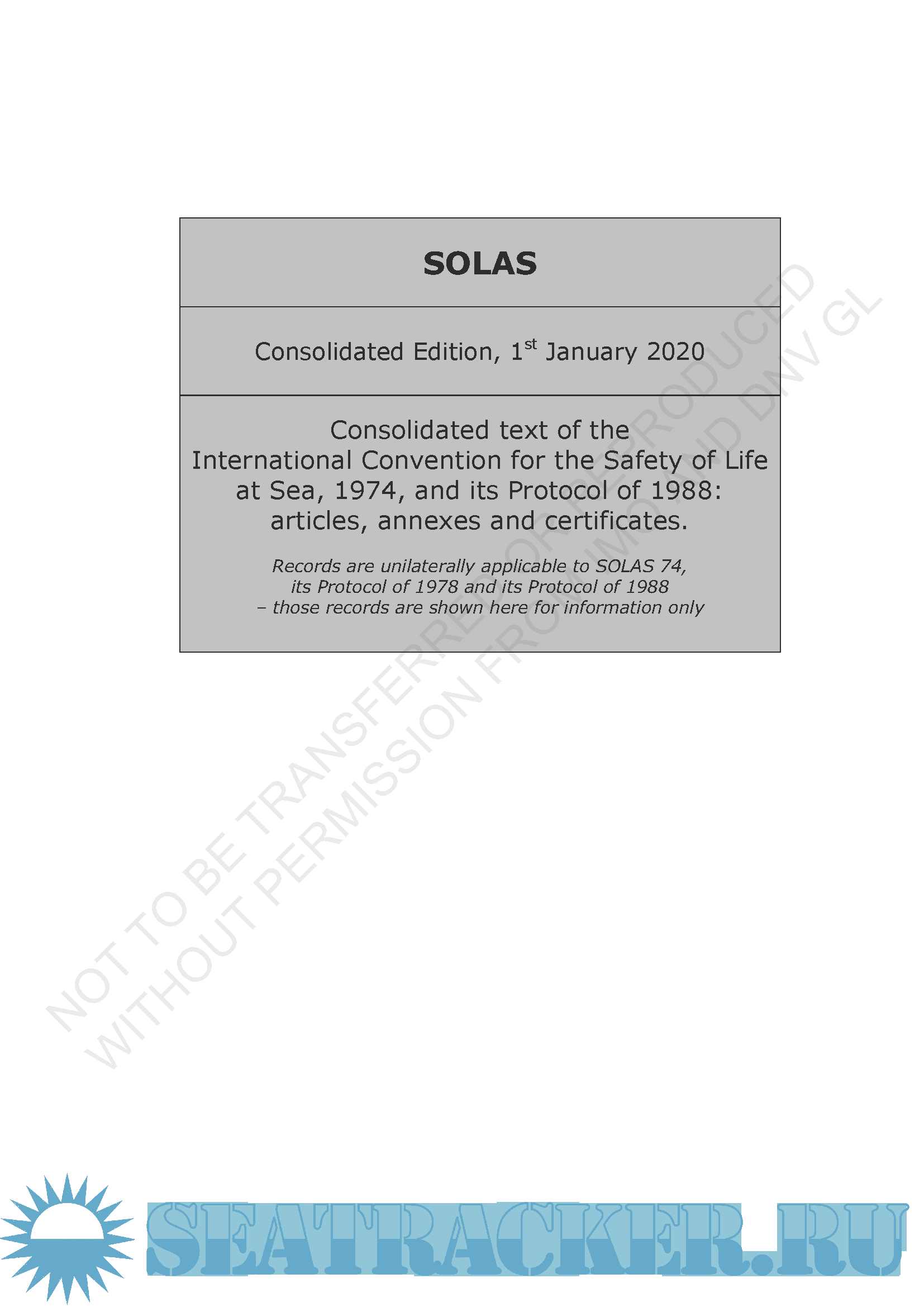 In order to provide an easy reference to all SOLAS requirements applicable from 1 January 2020, this edition presents a consolidated text of the SOLAS Convention, its Protocols of 1978 and 1988 and all amendments in effect from that date.