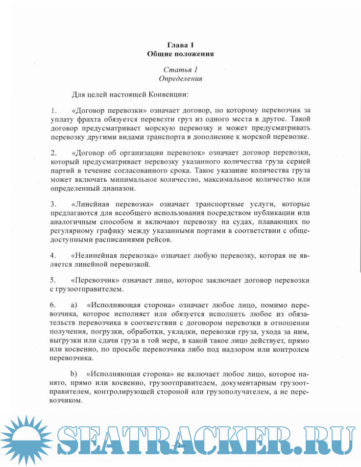 Описание: В конвенции указываются единообразные правила, регулирующие международные договоры полностью или частично морской перевозки, способствующие правовой определенности и повышению эффективности международной перевозке грузов.