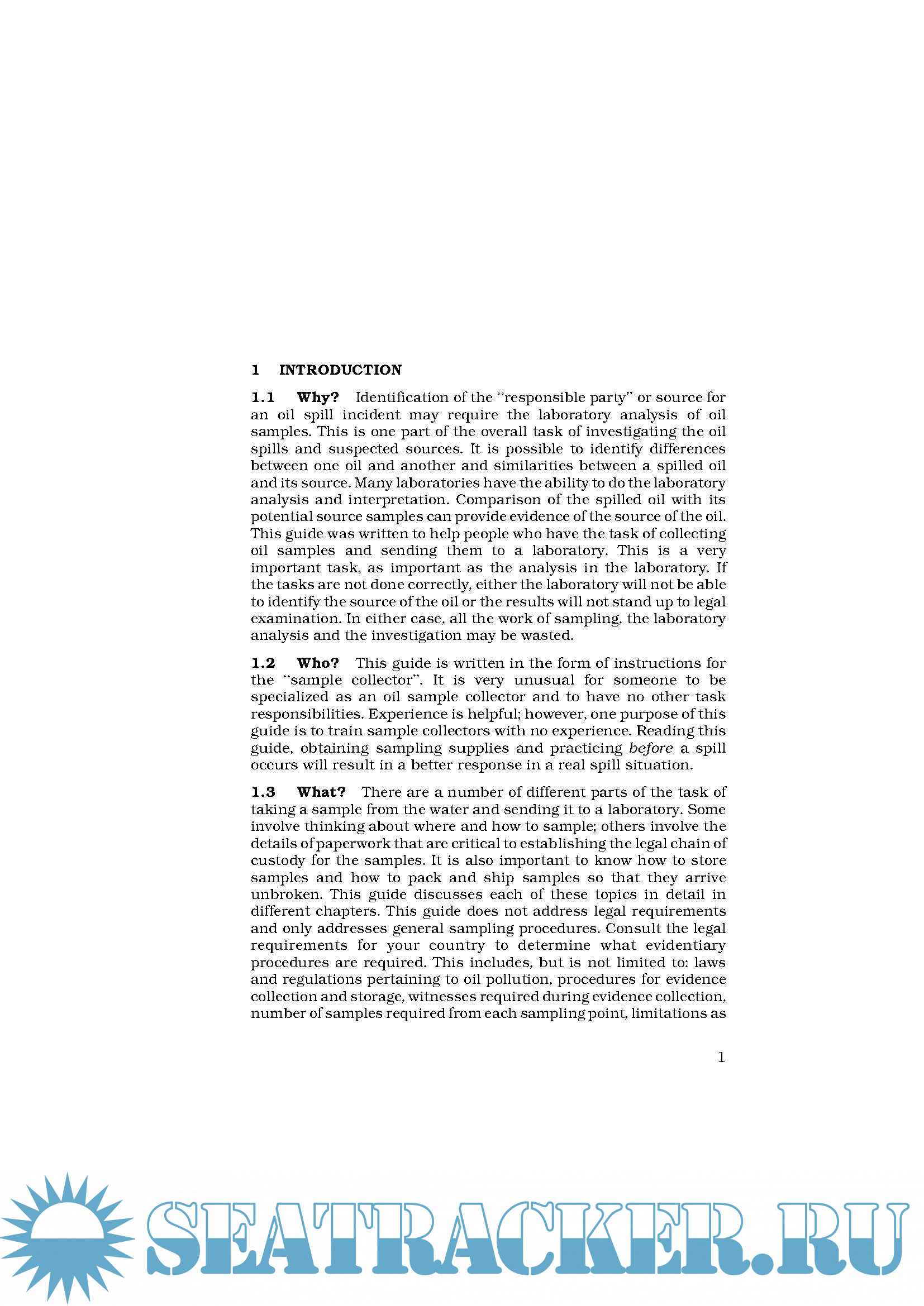 Description: This section provides guidance to Governments on the techniques, including those of developing countries, on the techniques, equipment and strategies for sampling oil to identify unknown sources of spilled oil.