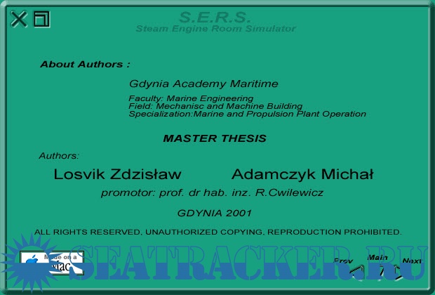Description: The Steam Engine Room Simulator is designed for oil tanker of the capacity 250.000 - 300.000 DWT.-The nominal work conditions equal
