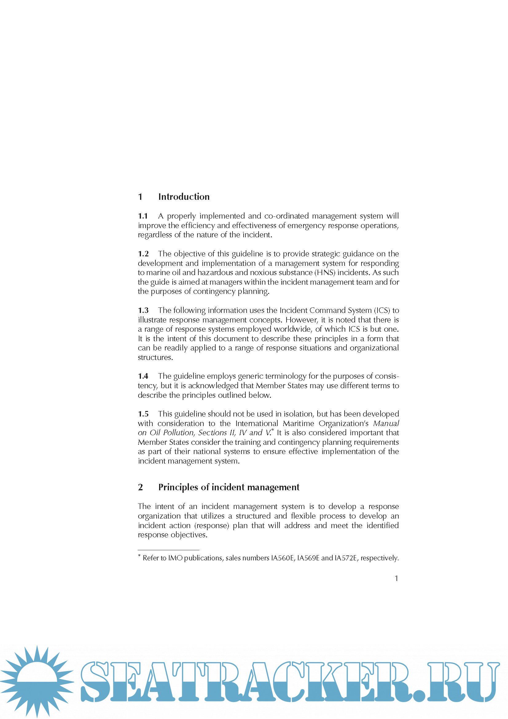 Description: This publication, prepared by the OPRC-HNS Technical Group and approved by IMO’s Marine Environmental Protection Committee, provides guidance on the establishment of an incident management system (IMS) for marine pollution incidents.