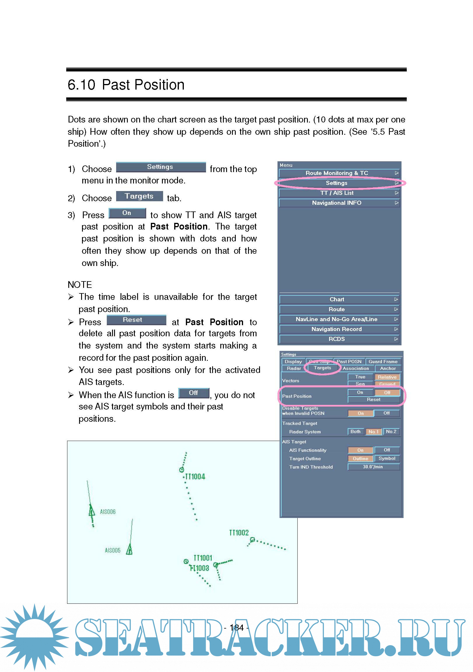 tracked targets and AIS targets are shown on the chart screen with some navigational