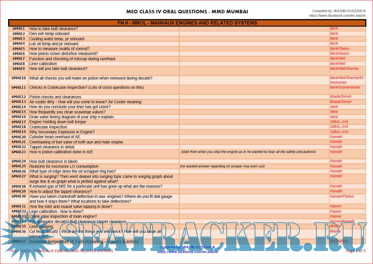 Description: This is a random compilation of questions asked by Surveyors during Orals examinations in Mumbai MMD, India.