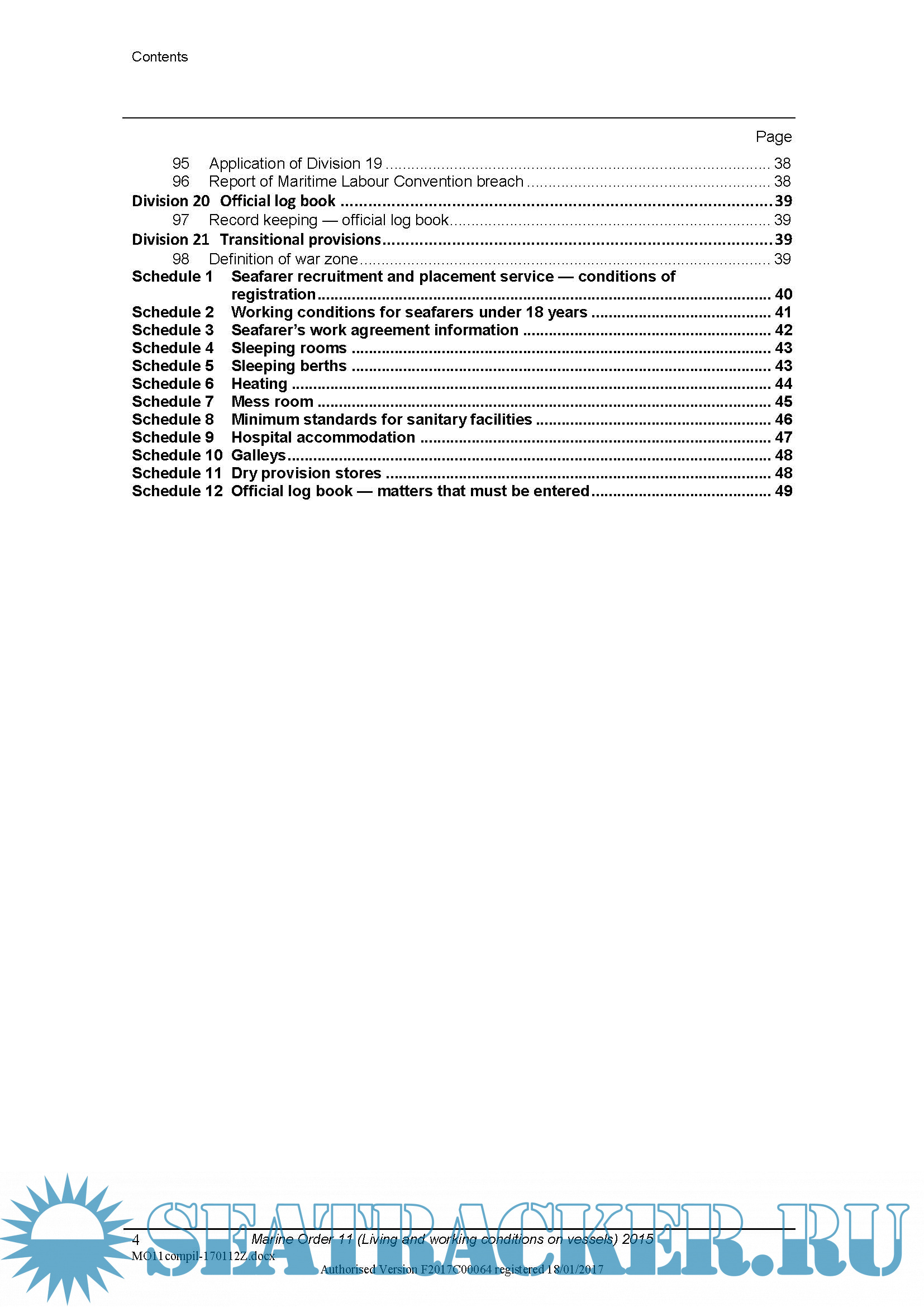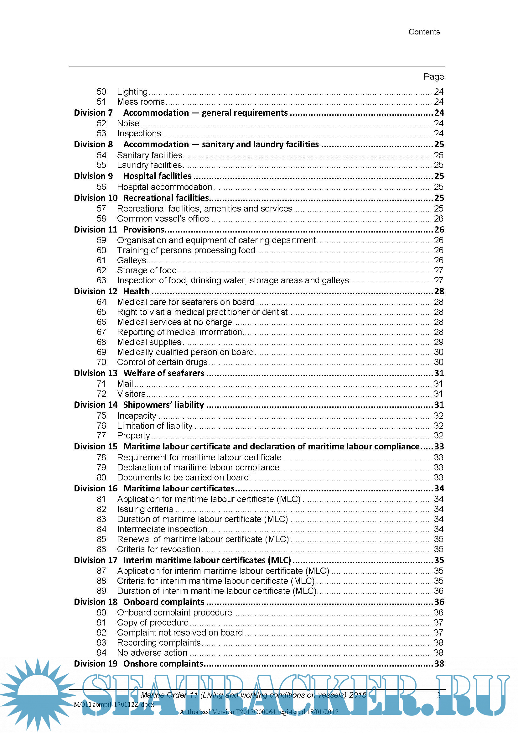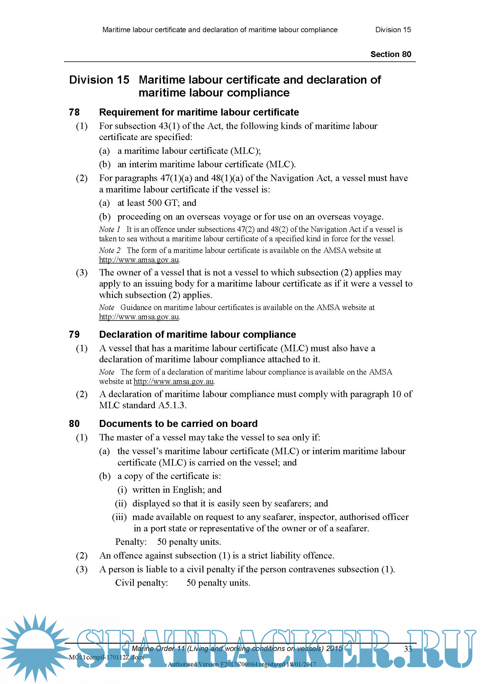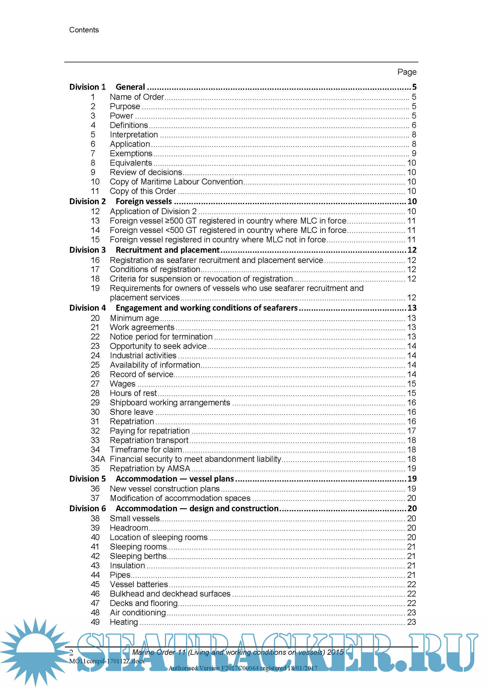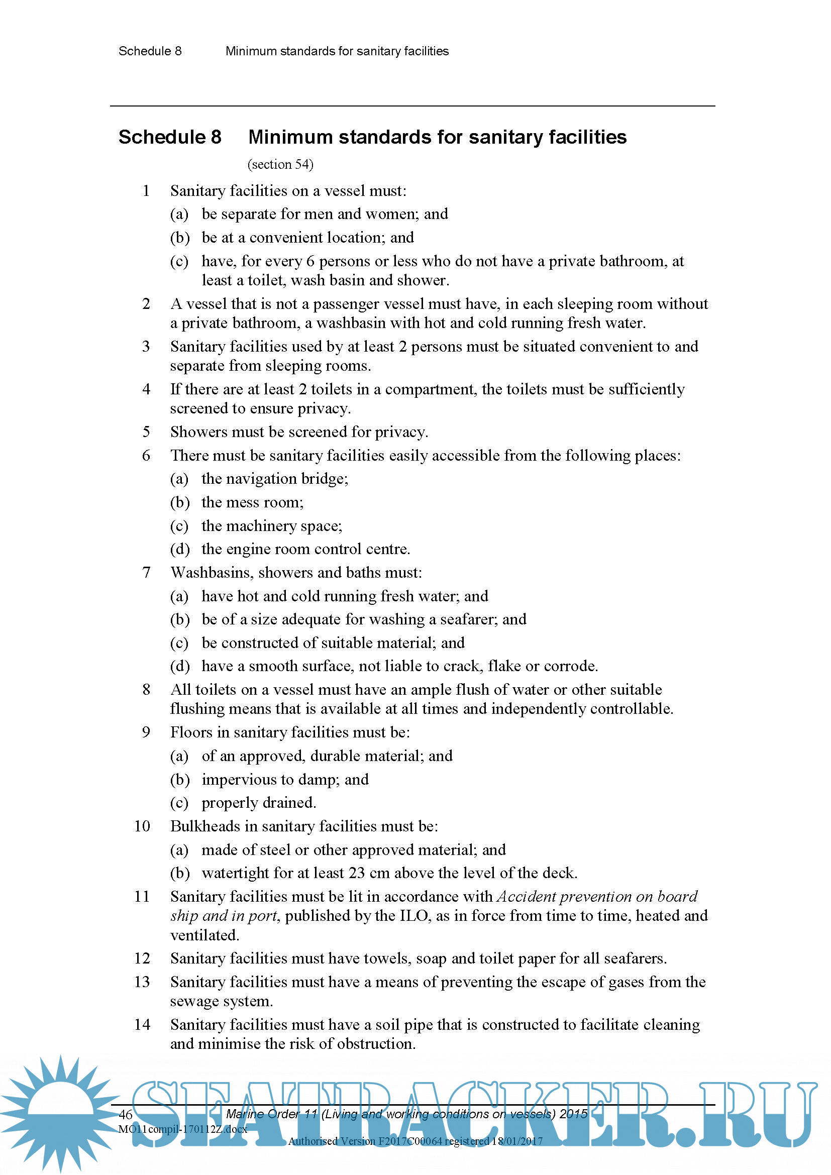 Description: Marine Order 11 (Living and working conditions on vessels) 2015