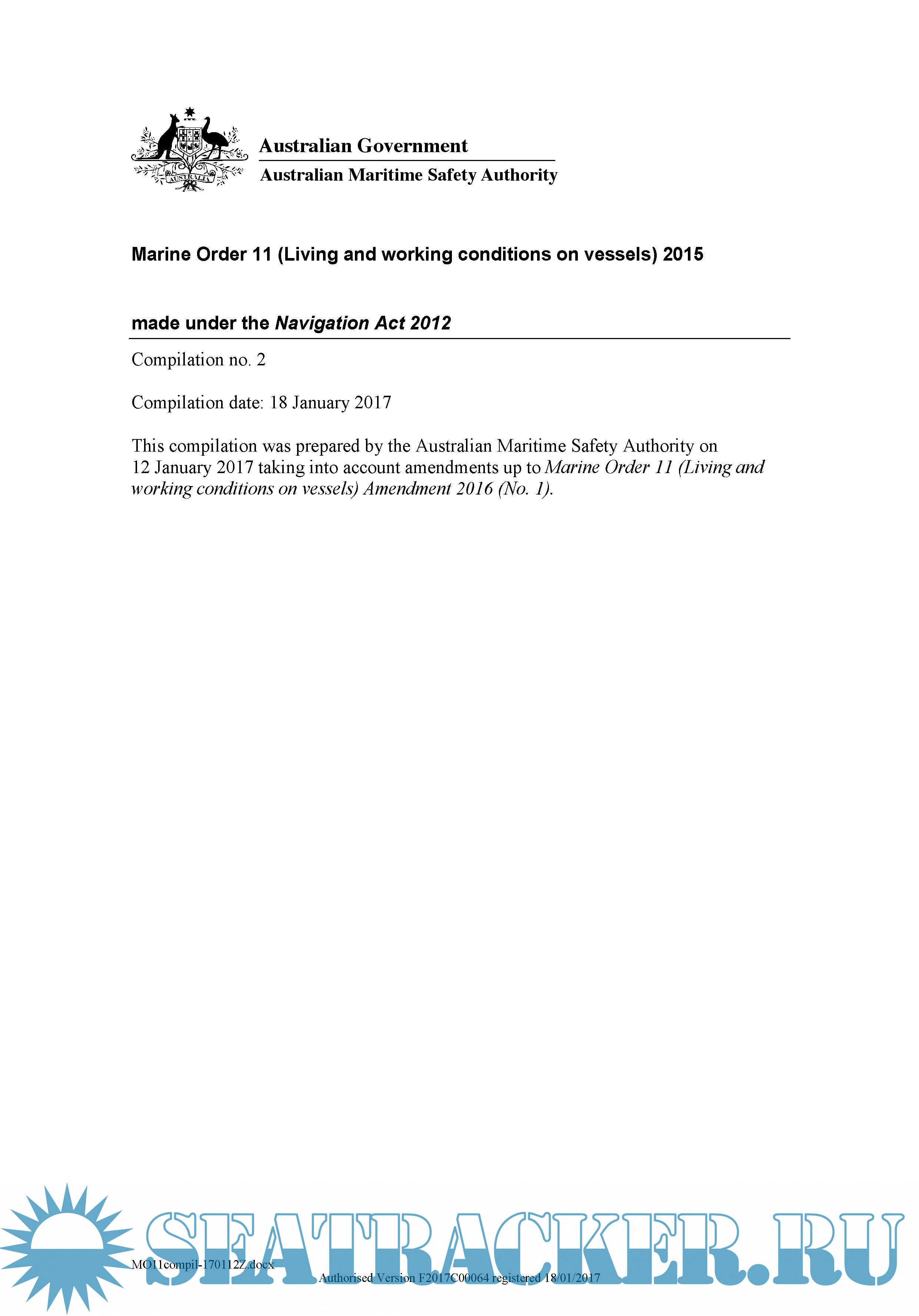 taking into account amendments up to Marine Order 11 (Living and working conditions on vessels) Amendment 2016 (No. 1).