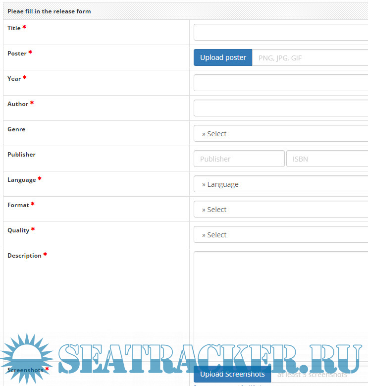 https://seatracker.info/viewtopic.php?t=21862 You need to read the rules on the above url. Click the pencil on the right top to enable editing so that you can complete and fill the required fields and the required screenshots . The required book contents must be either in text or as image screenshot(s) . Submit and again download your torrent. Then just wait for the others to download your torrent. A moderator will check your upload if ok, and if so, then you will see it.