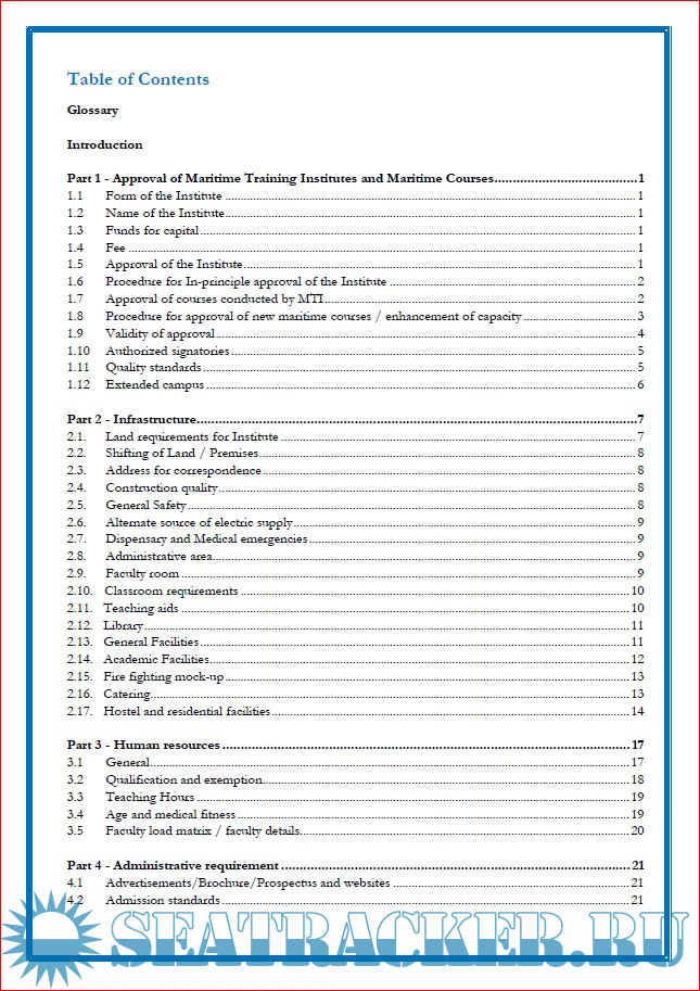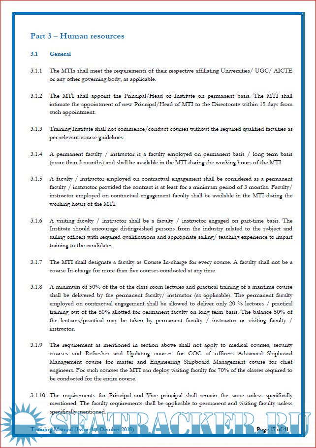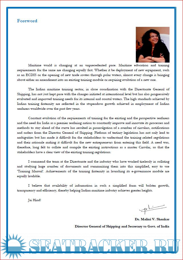 Recognizing the need for a comprehensive Training Manual as a ready reckoner for the Maritime Training Institutes to comprehend the compliance requirements, the Directorate had taken up the challenging task of consolidating all the relevant information. A large number of DGS Orders, Training Circulars and MS Notices have been combed thoroughly in the development of this Training Manual.
