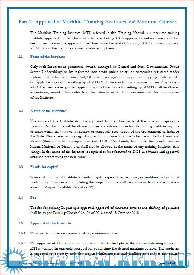 Description: The Directorate General of Shipping, Government of India, in its quest to evolve as a highly effective, efficient, responsible and progressive maritime administration, recognizes the need to develop and sustain a pool of competent seafarers catering to the needs of global and national maritime industry. Maritime Training Institutes of a mighty seafaring nation like India have a significant role to play in fulfilling this vision. In this context, it is imperative for the Directorate to implement robust systems to approve, administer, supervise and monitor the efficient functioning of Maritime Training Institutes of the nation.