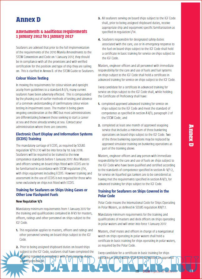 Description: The STCW Convention and Code is continually being updated and amended to suit the changing requirements of the maritime industry. The ITF have produced previous guidance for seafarers under STCW 95 and the 2010 Manila amendments that reect the necessary quali cations and experience of a seafarer dependent on their role and type of ship they are employed on.