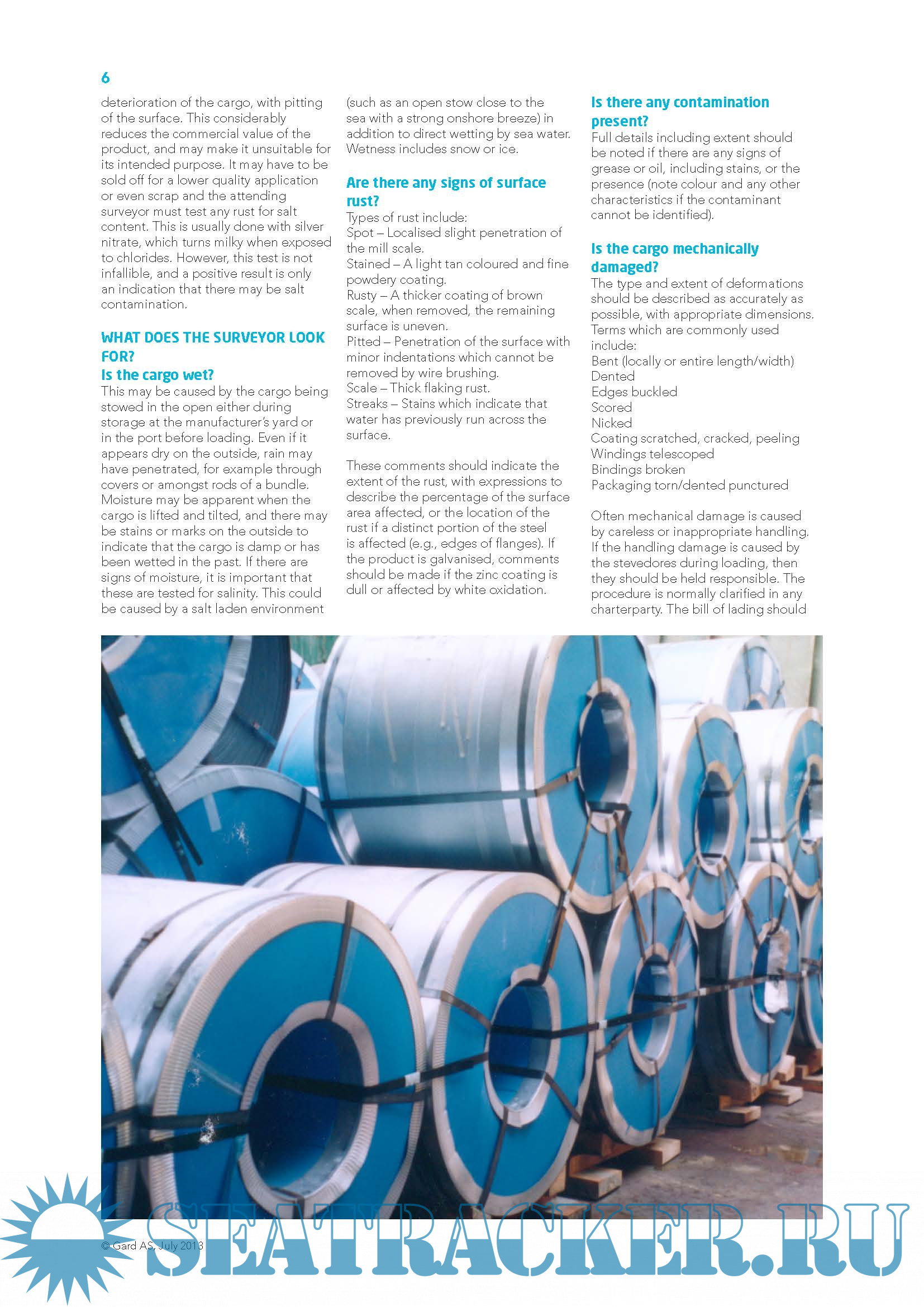 Year: 2013 Language: english Author: Gard P&I Genre: Guide Format: PDF Quality: eBook Pages count: 30 Description: This booklet contains a collection of loss prevention material relating to steel cargoes, which over the years has been published by Gard. Steel cargo claims account for a large proportion of total cargo claims, both in terms of frequency and cost. This booklet contains material with numerous examples of incidents resulting in large steel claims.