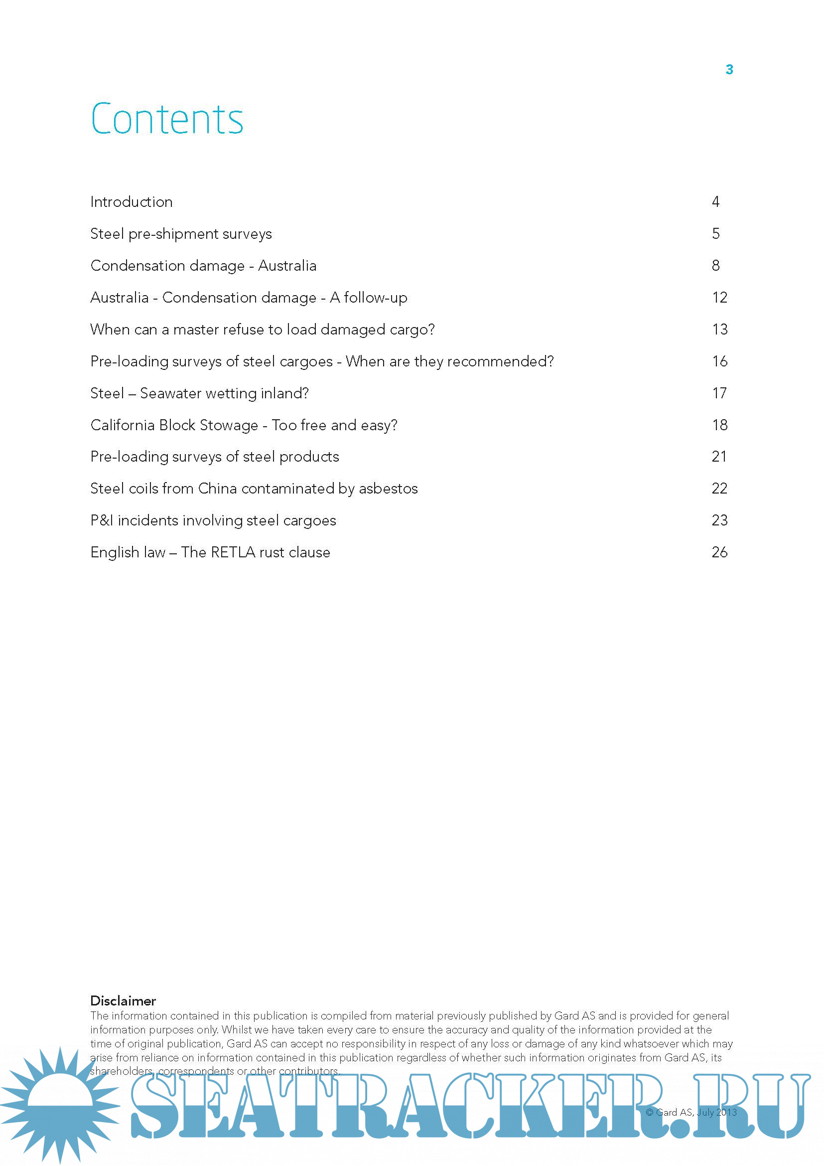 The carriage of steel , A selection of articles previously published by Gard AS
