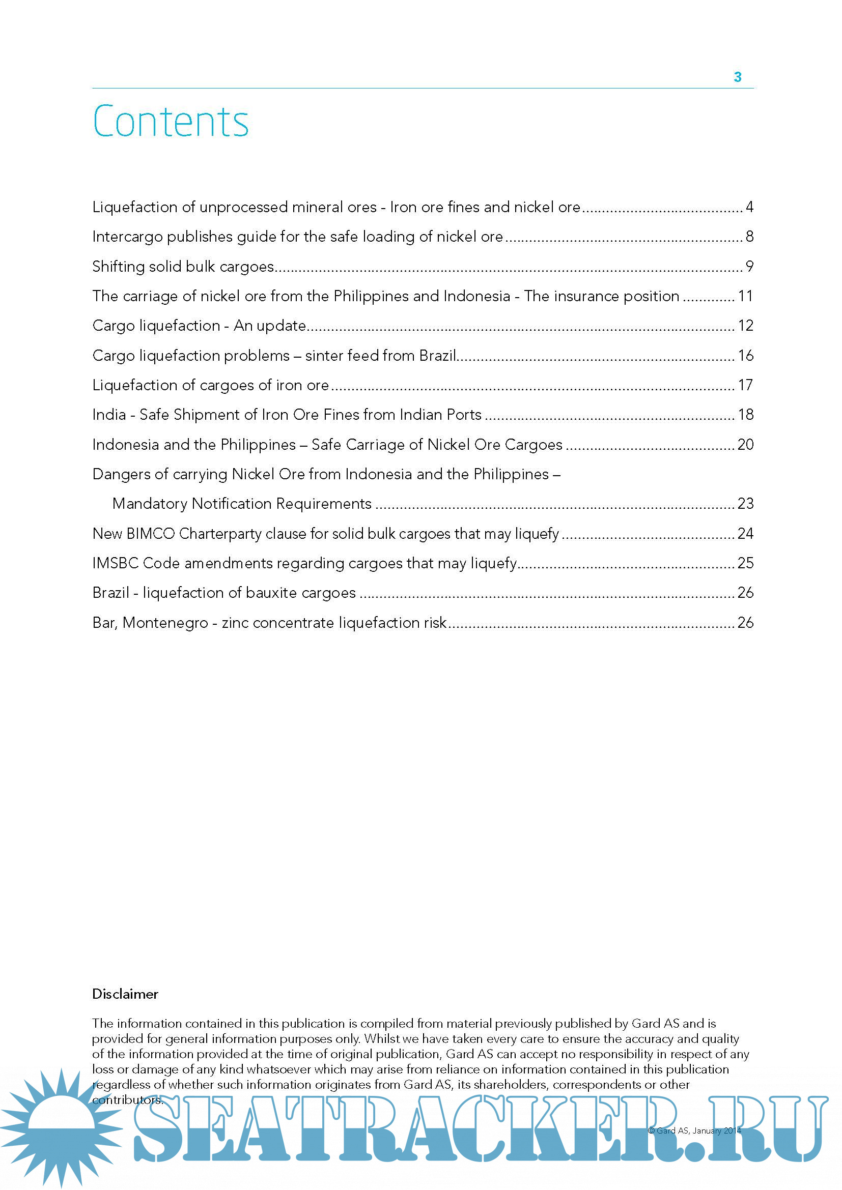 Liquefaction of solid bulk cargoes , A selection of articles previously published by Gard AS