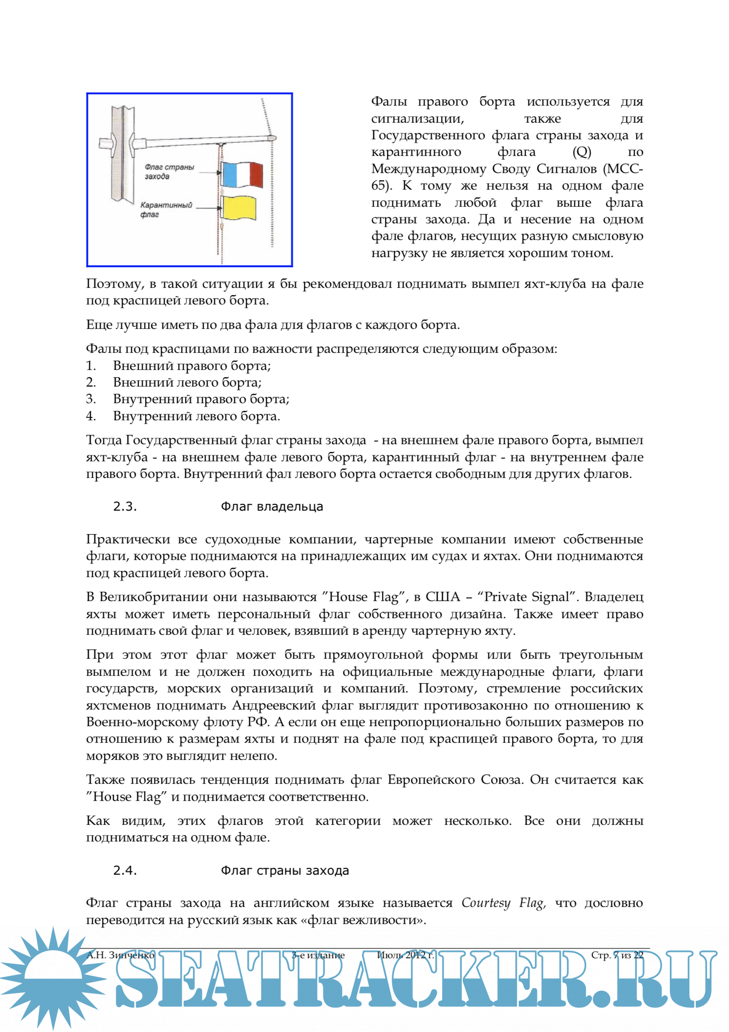 В яхтенном сообществе ситуация несколько иная. Лишь в нескольких странах есть рекомендации для яхт, плавающих под флагами этих стран. Обычно они разрабатываются руководящими органами, яхтенными школами, общественными организациями, объединяющими людей, занимающимися яхтингом, либо яхт- клубами и носят характер рекомендаций.