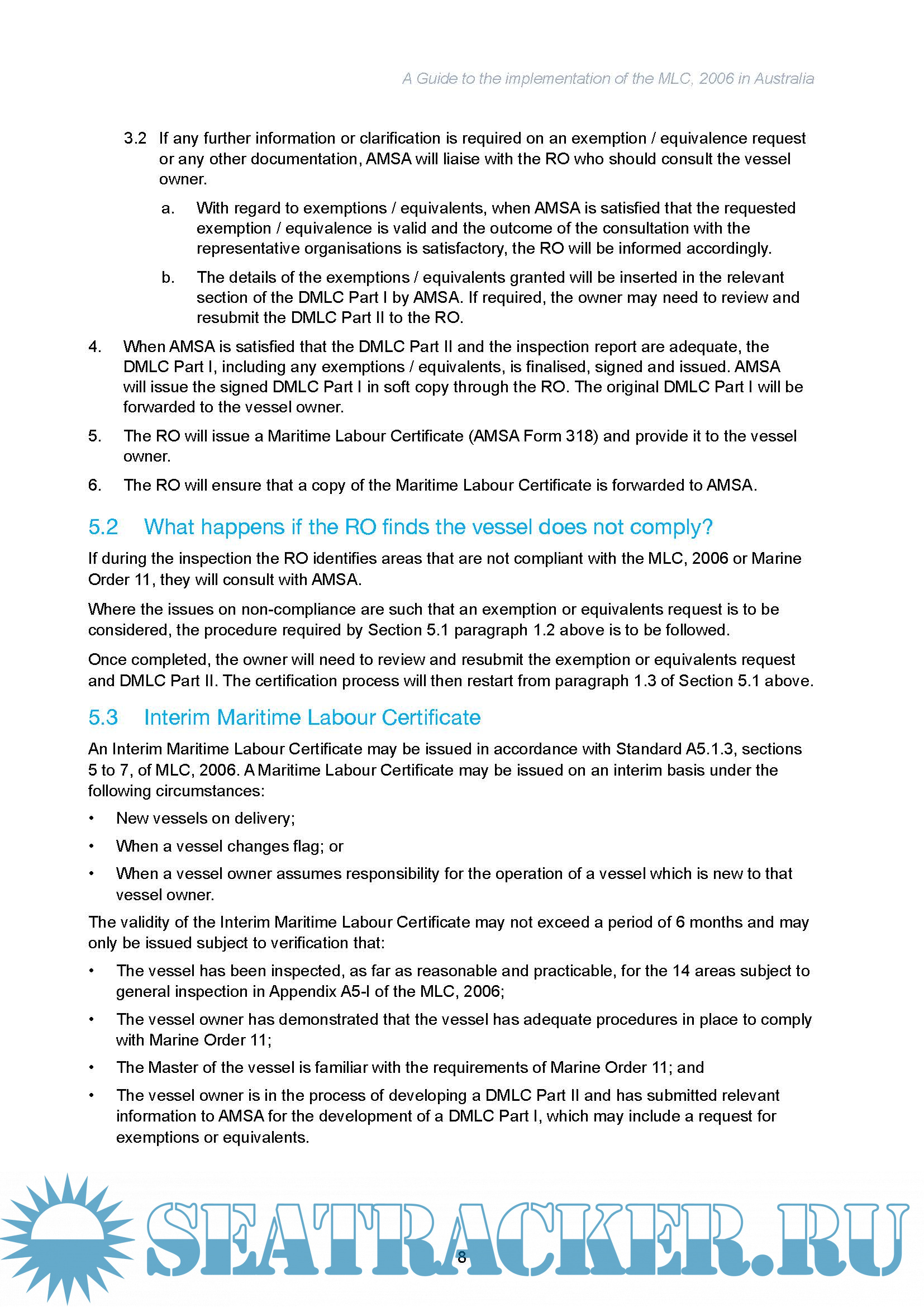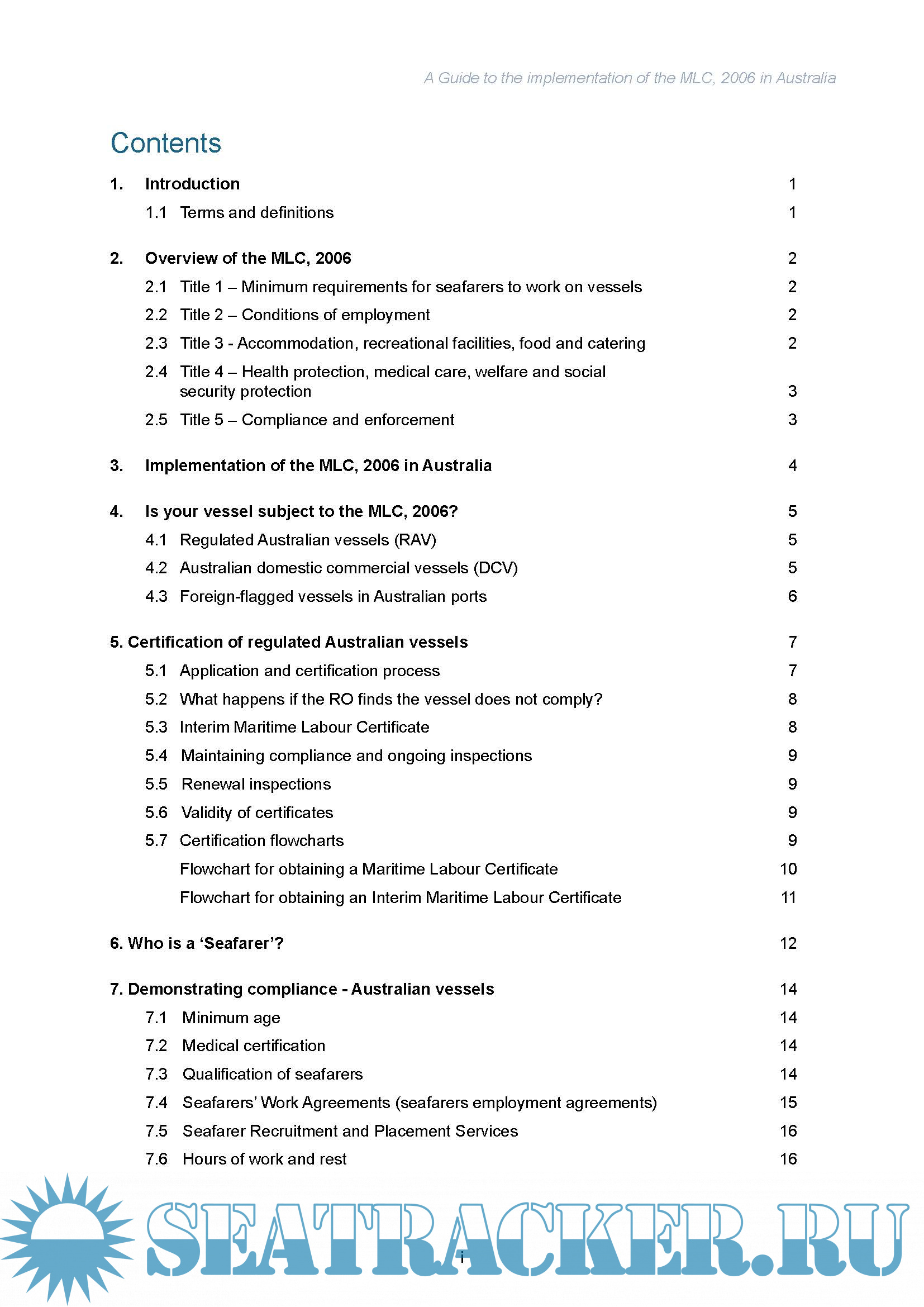 Maritime Labour Convention 2006 , A Guide to the implementation of the MLC in Australia, version 3