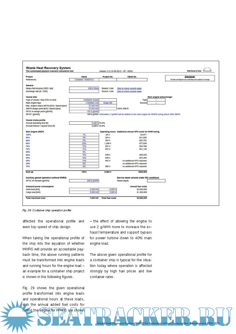 Year: 2014 Language: english Author: MAN Diesel & Turbo Genre: Technical book Format: PDF Quality: eBook Pages count: 32 Description: The increasing interest in emission reduction, ship operating costs reduction and the newly adapted IMO EEDI rules calls for measures that ensure optimal utilisation of the fuel used for main engines on board ships. Main engine exhaust gas energy is by far the most attractive among the waste heat sources of a ship because of the heat flow and temperature. It is possible to generate an electrical output of up to 11% of the main engine power by utilising this exhaust gas energy in a waste heat recovery system comprising both steam and power turbines, and combined with utilising scavenge air energy for exhaust boiler feed-water heating.