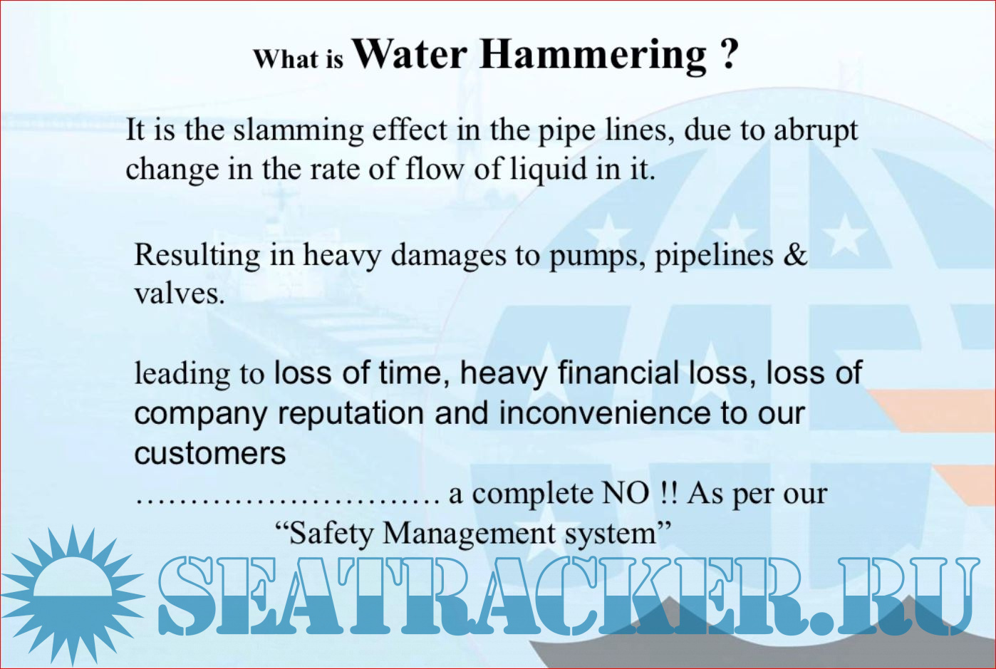 Description: Presentation on understanding the concept of Water Hammering by NYK Ship Management.